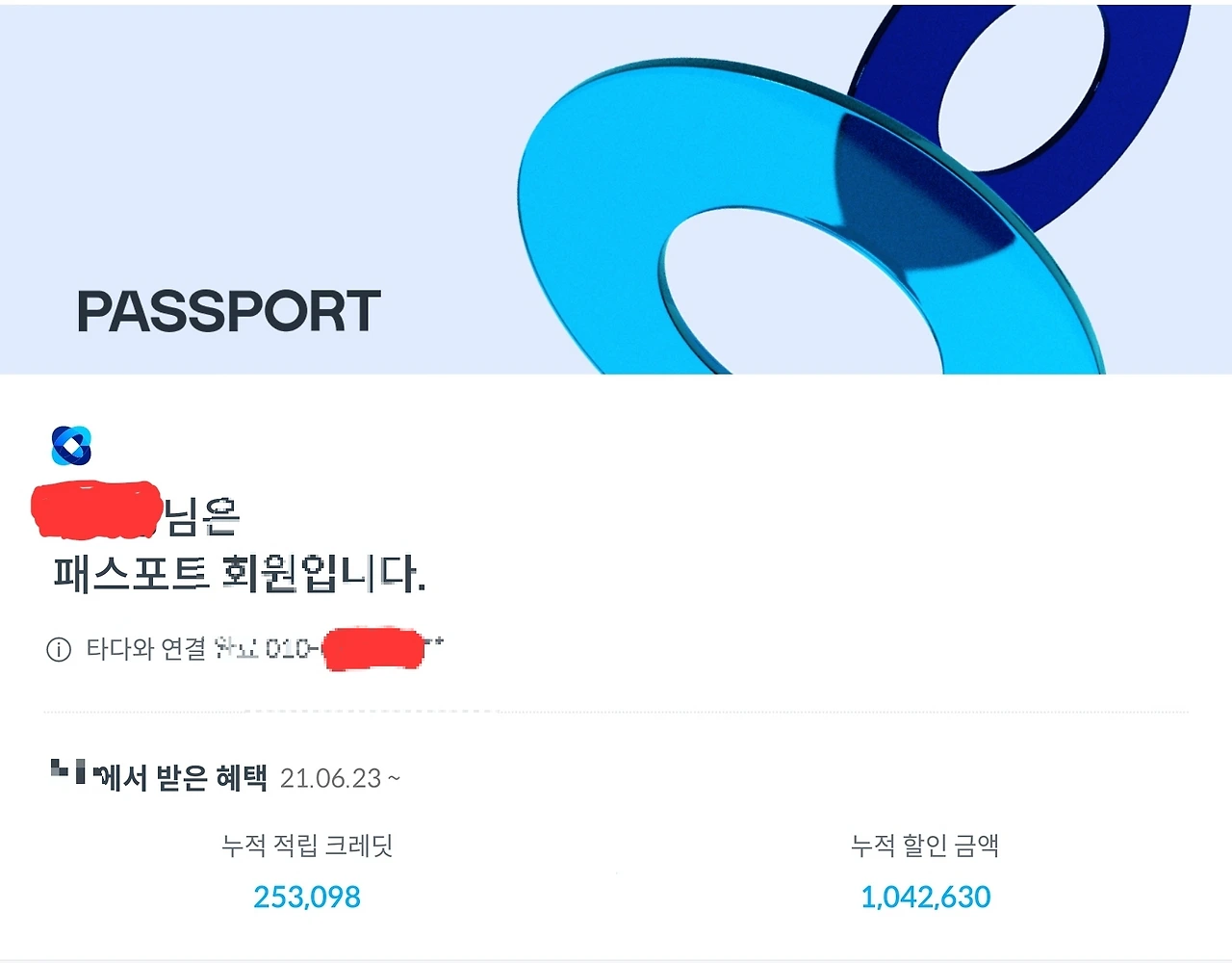 차량 공유 서비스 개인 멤버십 화면, 1년 6개월간 적립크레딧을 많이 받았다.