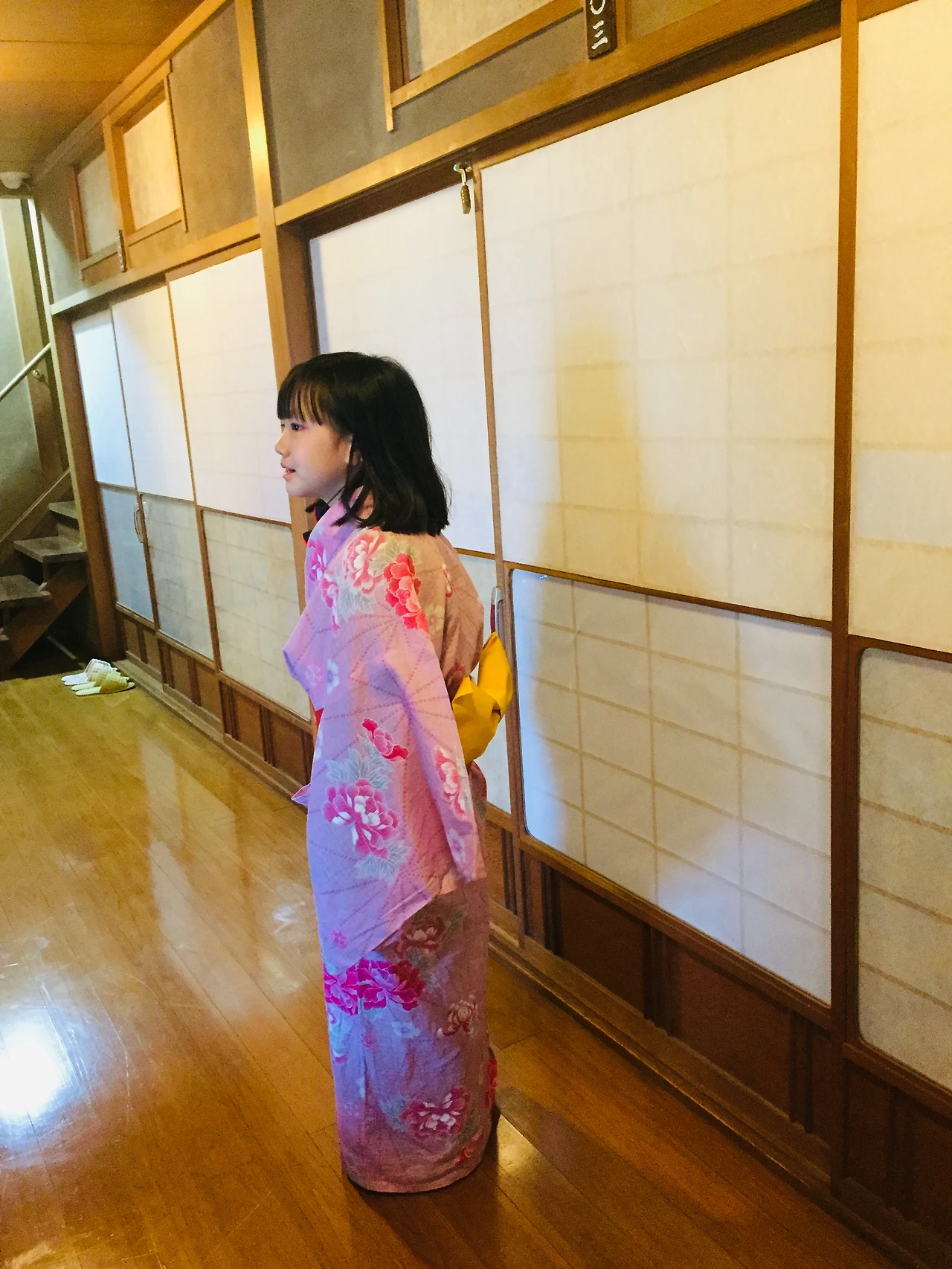 일본 다다미형식의 숙소는 침대가 없어 불편했지만, 유카타를 입어 보면서 예쁜 막내아이의 사진추억을 확보했다.