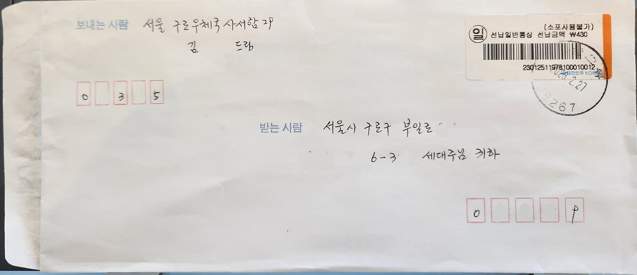 자녀들은 편지를 보낸 사람이 누구냐며 신기한 듯이 물어본다. 공과금이나 세금고지서 외에 누군가 손으로 쓴 편지가 집에 온 적이 없으니 아이들은 이런 편지를 처음 볼 수도 있겠다. 사무실에서도 이런 전도용 손 편지를 2~3번 정도 받아본 적이 있었는데 직원들이 신기해했던 기억이 난다. 워낙 편지들을 주고받지 않으니 어떤 목적이건 누군가에게 손 편지가 오면 마냥 신기한 모양이다. 마음이 힘들거나 외로운 사람들에게는 잘 먹힐 전도방법일 수도.