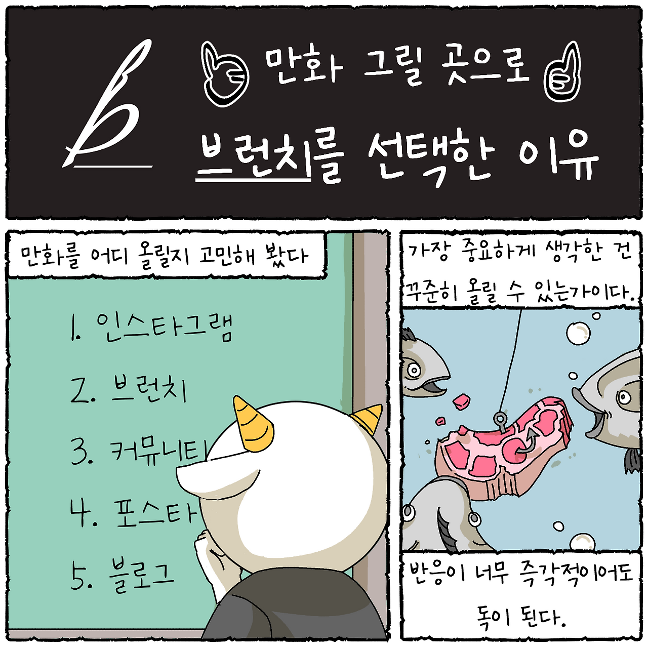 만화를 하고 많은 곳 중에 브런치에 올리는 이유는?
