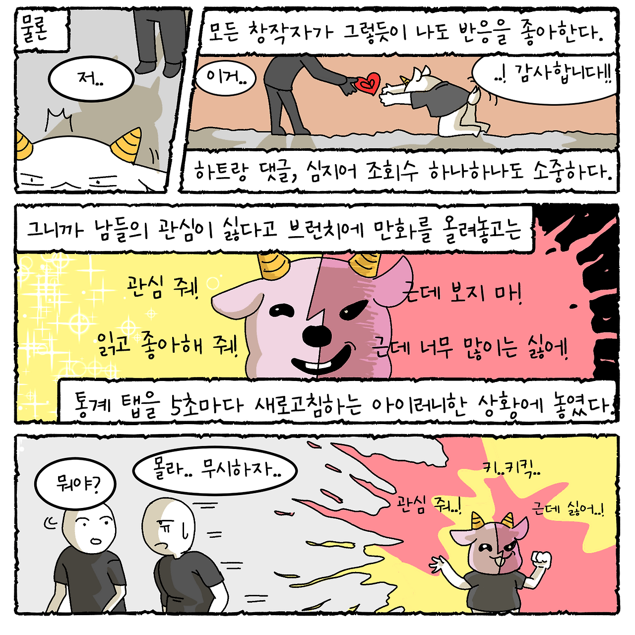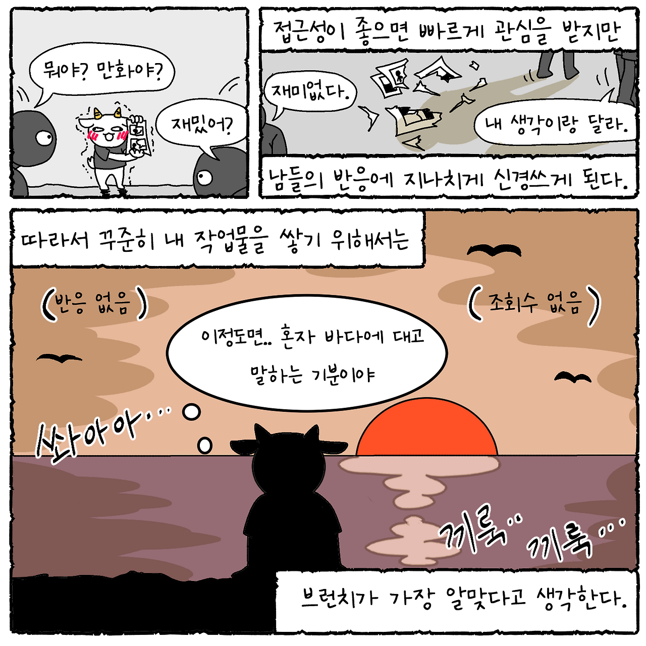 사람들의 반응에 신경 쓰기보단 꾸준히 올리는 게 가장 중요하겠지요?