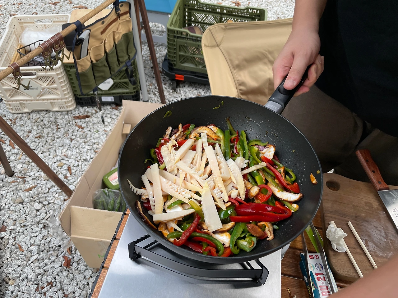 다음번에 나갈 때는 만드는 음식의 조리과정이나 현장 분위기를 휴대폰에 편하게 담을 수 있게 삼각대를 하나 설치해둬야겠다. 친구가 설치해준 삼각대를 막상 활용하지는 않은 게 뒤늦게 한스럽다. 같은 걸로 하나 구매해서 위치를 잡아둬야지. 그래도 친구가 중간중간 찍어준 사진이 많아서 다행이다. 지난 기억을 기록할 때 늘 아쉬운 것은 음식 준비를 하느라 손이 바빠 찍지 못한 사진들이다.