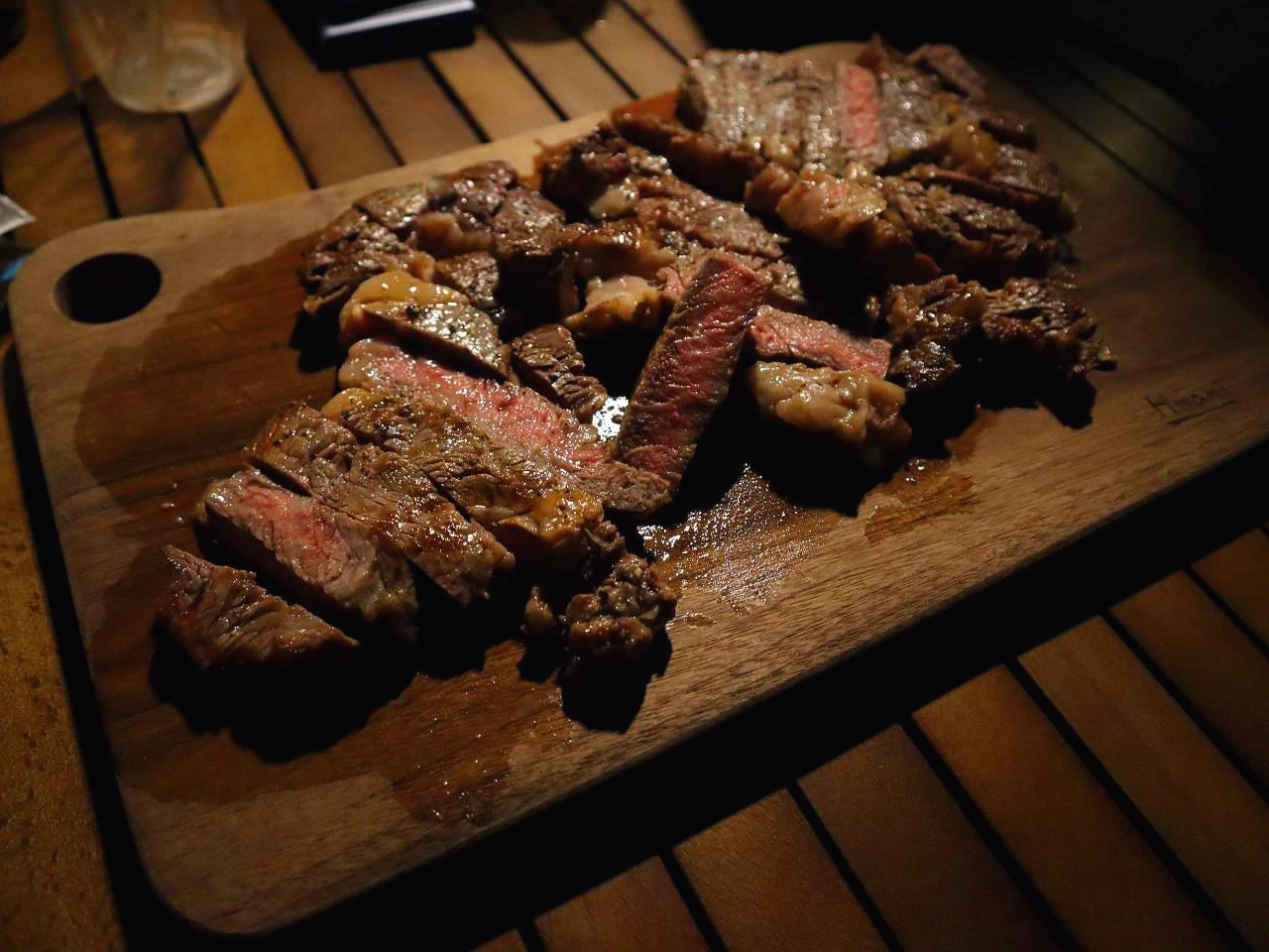 낮에 소금을 뿌려서 간을 미리 안으로 넣어두고, 저녁에 스테이크로 구워 먹었다. 양쪽으로 소금 간을 하고 마무리할 때 버터를 조금 잘라 넣었다. 그리고 프라이팬을 하나 위에 덮어 익히고, 레스팅 했다. 고기 잘 구으시는 분들이 유튜브에 굽는 방법을 올려주신 덕에, 괜찮은 퀄리티의 스테이크를 먹을 수 있는 게 참 감사한 일이다. 같이 간 친구들 모두 다 잘 먹더라. 2인 생각하고 준비했던 양이었지만 3인이 먹기에도 모자라지는 않았다. 750g 트레이더스에서 새우살이 큰 부위로 골랐다. 트레이더스에 갈 때마다 이런 고기부위가 있으면 감사한 마음으로 골라오곤 한다. 세 덩이를 한 번에 구으려다 보니 팬 온도가 낮아져서 한 덩이의 겉 색이 잘 나지 않아 불안했다. 그래도 심부는 적당하게 익어있었고, 잘 익은 나머지 고기들이 있어 충분히 좋은 저녁 메뉴였다.