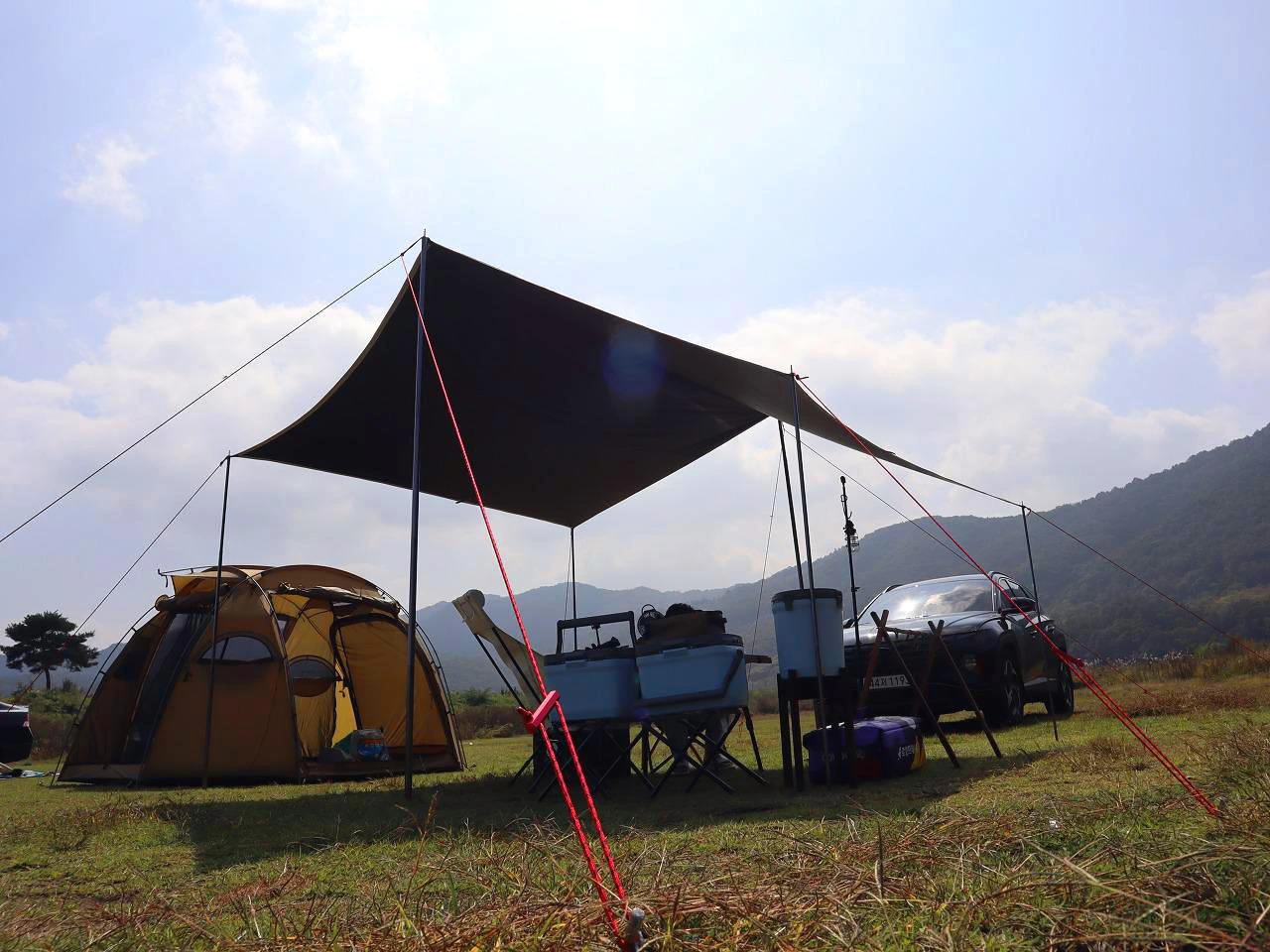 타프를 치는 방법을 유튜브에 열심히 찾아본 결과 혼자서 칠 정도의 정보를 습득했다. 물론 두 명이서 갔으니 둘이서 치는 것이 훨씬 빠르다. 다만, 혼자서도 가능해야 좋아하는 사람이 함께 간 캠핑에서 도움을 받을 수 없을 때 싸움이 나지 않는다고 들었다. 즐겁자고 같이 나간 캠핑에 싸우게 된다면 슬픈 일일 것이다. 그런 일은 없어야 하겠다. 물론 아직까지도 친구들끼리 다니는 캠핑이 전부이다.