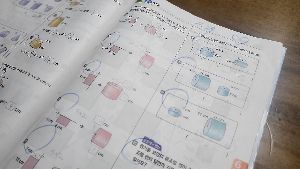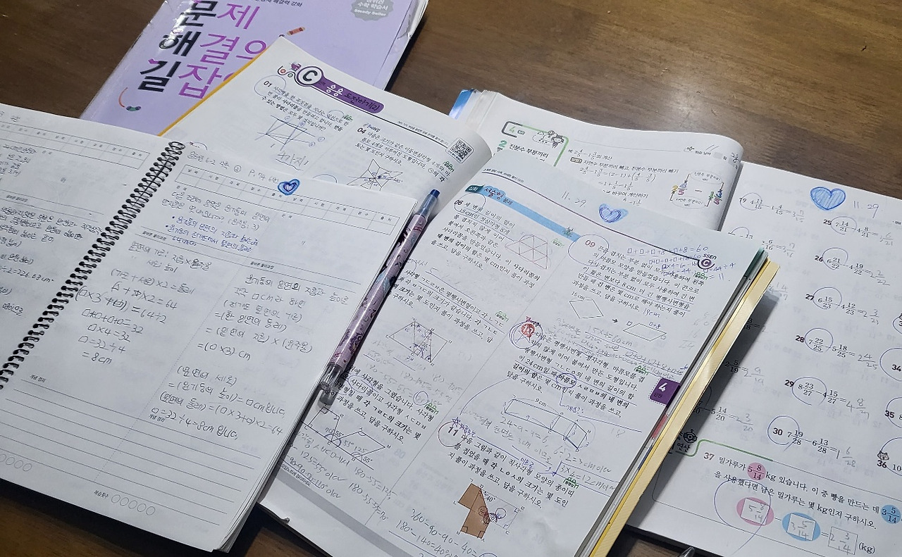 우리 아이들은 7살부터 고학년이 된 지금까지 태권도 학원을 다니고 있다. 한겨울에도 땀을 뻘뻘 흘리며 뛰어 들어오는 모습이 참 좋다. 두 아이 모두 3학년때까지는 옆에 끼고 수학 개념부터 가르쳤다. 4학년때부터는 개념서, 유형서, 서술형 문제집 순으로 아이들이 서점에서 고른 문제집을 구매해 주고, 개념 공부부터 스스로 하도록 했다. 한글로 쓰여있는 개념과 내용을 스스로 읽고 이해하는 능력은 반드시 필요하니까. 해답지는 가지고 있다가 채점 해주고 오답 노트 기록에 대해 조언한다. 오늘도 고생했다고 채점 후 하트도 빼놓지 않는다. 해설서의 모범 답안을 활용하는 방법을 알려주고 곧 해답지도 넘겨주려고 적절한 시기를 보고 있다. 문제집은 5장씩도 풀어보고, 1장씩도 풀어보다가 그날 단계나 문제의 양에 따라 스스로 정하게 했는데 보통 2~3장을 푼다. 이렇게 부담 없이 현행만 하는 것으로 초등 수학을 진행 중이다. 주말엔 쉬고 평일만 진행하는데, 학기별로 3~4권은 거뜬히 풀 수 있다. 다른 집은 지금 중학 과정을 몇 번이나 반복했다는데.. 불안과 초조함이 없는 것은 아니다. 더 욕심을 내고 싶은 마음은 참아야 한다. 우리 아이들은 공부보다 더 좋아하는 것이 많으니까. 되도록 자식은 가르치는 거 아니라는 말에 100% 공감한다. 하루 종일 학교에서 학생들과 함께 하다가 집에 와서 또 아이들과 학습을 하다 보면 아직도 퇴근 안 한 느낌에 힘들 때가 많다. 열심히 하는 아이들에게 되려 짜증을 내는 어이없는 상황도 발생한다. 설거지를 마치면 독서 시간을 확보하기 위해 간식에 신경 쓴다. 먹음직스럽게 차려놓고 독서시간! 외친다. 아이들과 간식을 먹으며 함께 독서하는 저녁 시간은 내게도 힐링이 된다.