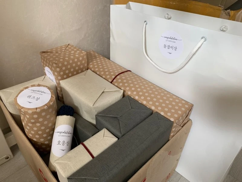 돌잔치 홀 같은 경우는 돌잡이 선물까지 포함되어있는 패키지가 있고, 퀴즈만 만들어오면 상품 준비와 포장까지 다 해주기도 하는데 선물은 3-5개 많으면 8개까지도 금액별로 준비되어 있었다.