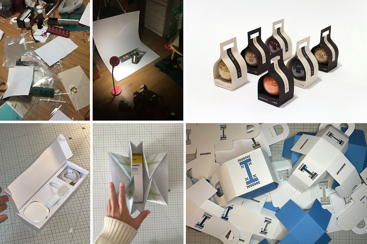 지금도 발주 직전에는 크게 다르지 않지만, 약 10년 전 내 방은 말 그대로 난장판이었다. 화면 속에서 괜찮아 보이는 디자인을 실제 출력하면 전개도가 맞지 않아 조립이 안 되거나, 의도한 색감이 아니어서 좌절했던 수많은 순간들. 시간과 돈을 퍼부었던 시행착오와 한가득 버려진 출력물을 디딤돌 삼아 지금까지 독립해서 먹고 사는 거다.