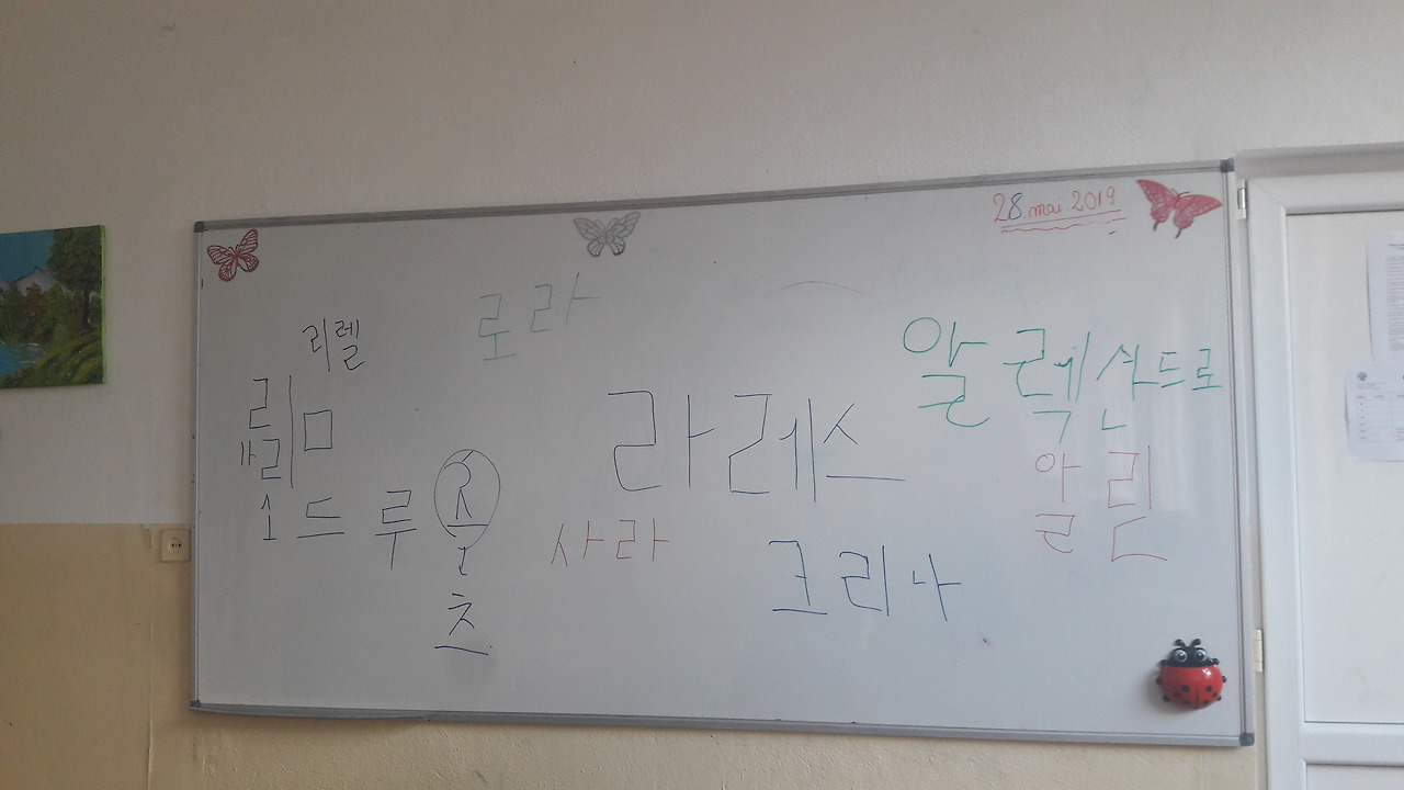 학생들이 나와서 쓴 자기 이름들. 글씨가 상당히 예쁘다. (참고로 Nr.25학교 사진)