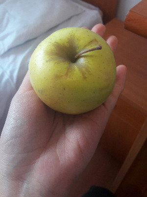 방에 와서 찍은 점심 사과. 내 손에 들어갈 크기