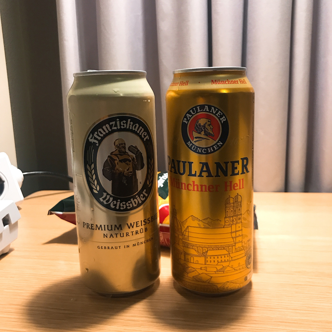 열한 시간 가까이 날아 오후 4시 반에 프랑크푸르트에 도착했다. 내리자마자 뮌헨으로 가는 ICE 열차를 타기 위해 프랑크푸르트 공항역으로 이동했다. 열차는 40분 지연되어 7시 반이 되어서야 출발했고, 숙소에 도착하니 11시였다. 구글에서 검색해보니 12시까지 하는 펍들이 몇 개 보였지만 밖에 나가서 먹기에는 우리는 이미 너무 지쳐버렸다. 아쉽지만 독일에서의 첫 맥주는 캔맥주를 사다 마시는 걸로 대신했다. 그리고는 깊은 잠에 빠져들었다.