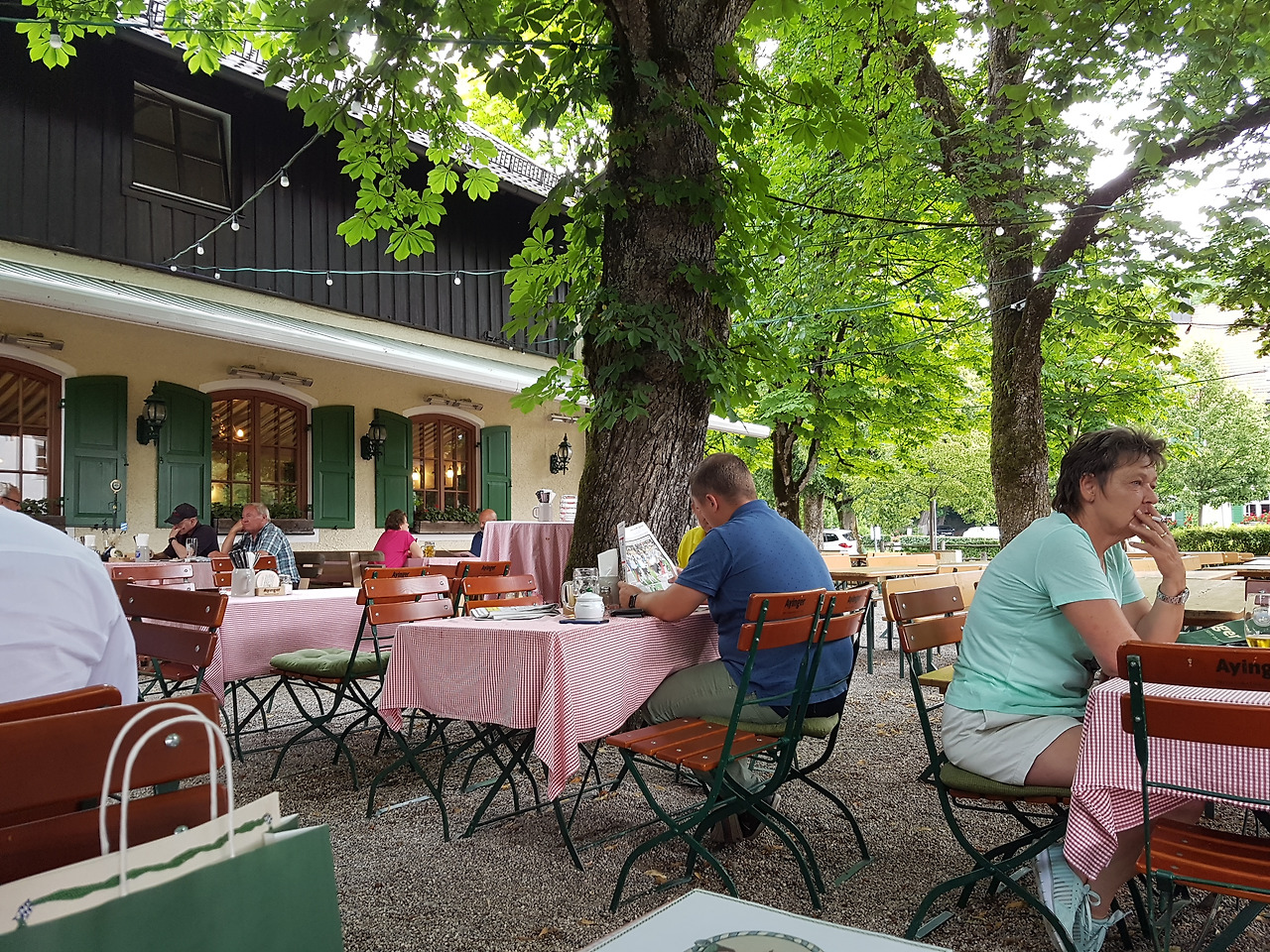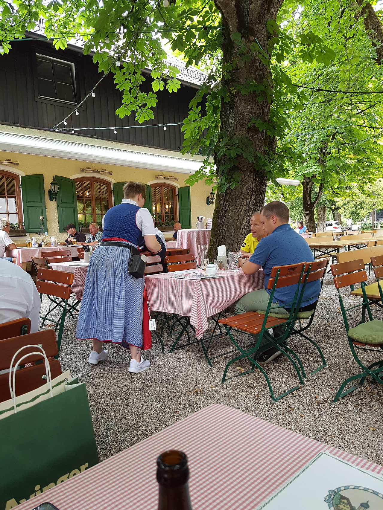 '자이언트 슈니첼'이 유명하다고 해서 그걸 시켰다. 남산 왕돈까스 크기 정도 되는구나 싶었다. 왕돈까스에 비해 튀김옷이 두껍지 않아서 덜 부담스러웠다. 소스에 흠뻑 젖어 나오지 않아서 더 좋았다. 여기서도 딸기잼을 같이 내주었다. 독일에서 딸기잼을 생각보다 자주 먹었어서 딸기잼을 한 병 사오기도 했는데, 돈까스 먹을 때 꼭 같이 찍어먹어 봐야겠다. 맥주 가격도 3.3유로(셀러브레이터는 3.5유로)로 뮌헨 시내에 비해 1유로는 더 쌌다. 뮌헨에서 맥주 마실 때 500ml에 4유로를 넘길래 맥주의 본고장도 맥주가 그렇게 싸진 않네 했는데, 3.3유로라고 해서 5000원도 안 되는 가격에 이렇게 맛있는 맥주를 마실 수 있어서 정말 기뻤다.