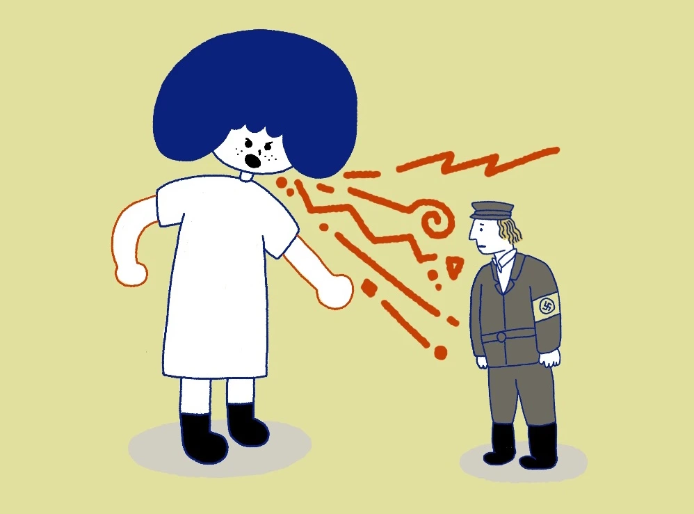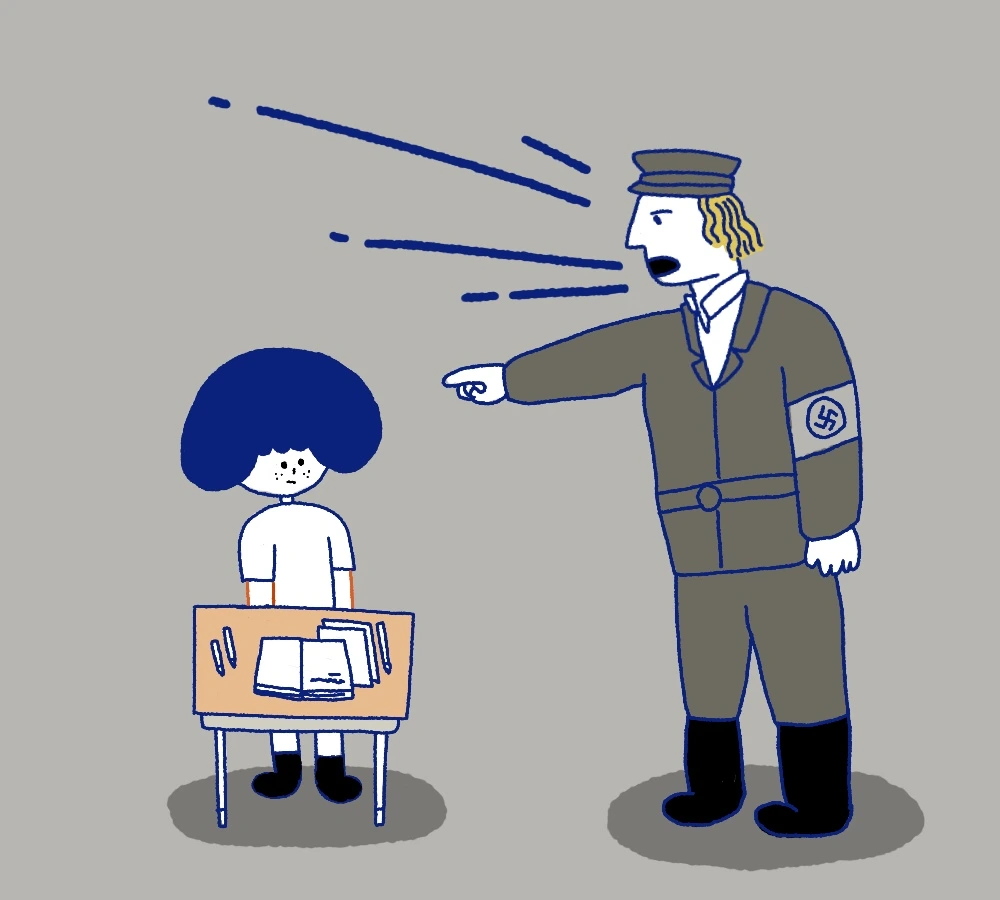 과제 제출이 늦어 초조한 순간 나타난 사람이 있다. 무려 나치복장을 입고 있다. 이 사람은 보편적이라는 명분을 내세워 누구나 지켜야 한다는 가치에 대해 이야기한다. 이렇게 하는 것이 옳은 것이고, 이렇게 행동해야 해!라고 말이다.