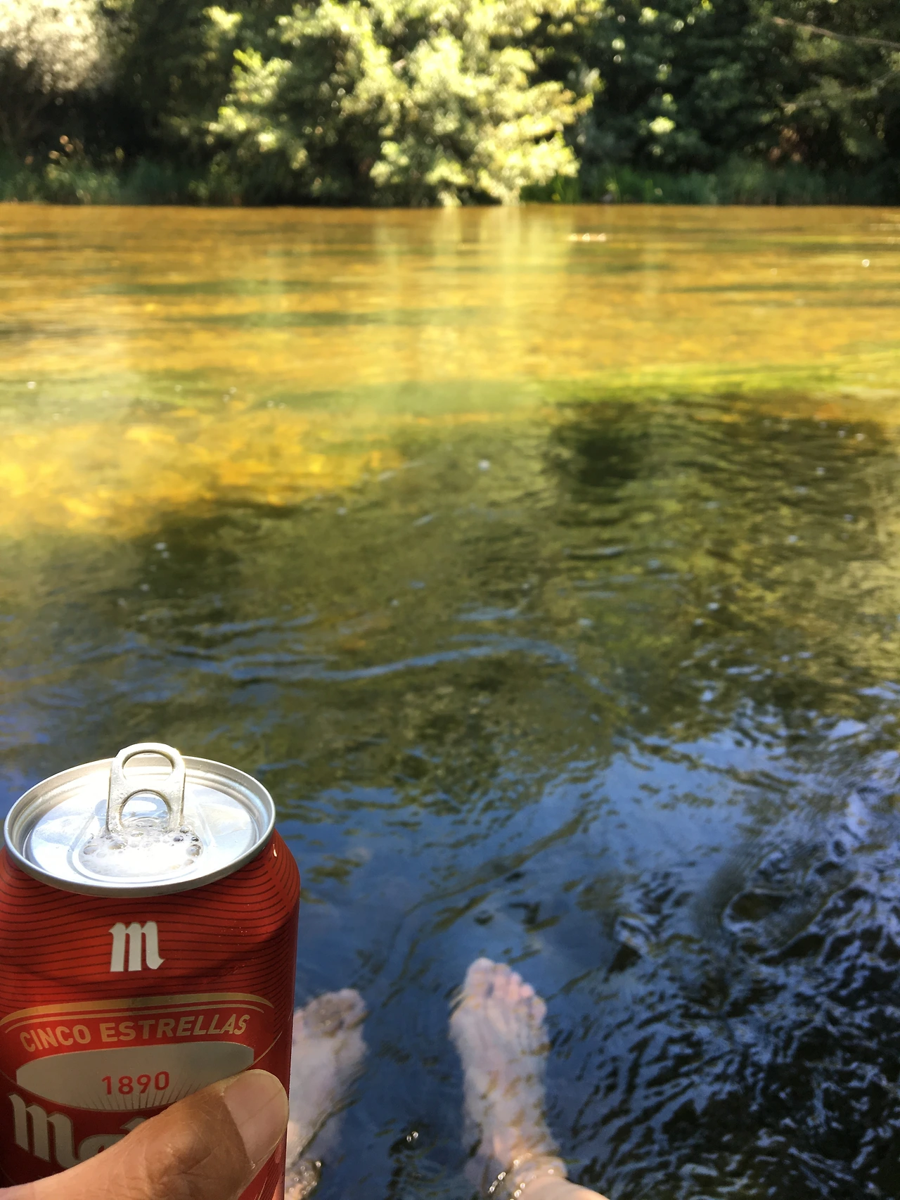 그리하여 플라이 피싱하던 그 강물에 발을 담그고 차가운 맥주를 마신다.