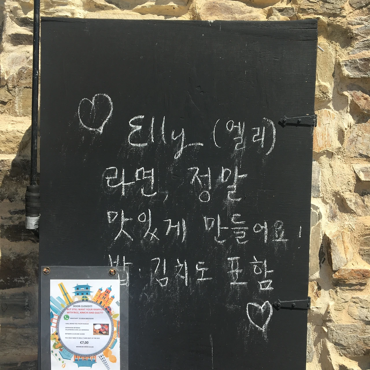 2. 까미노 노상에서 두 번째 보는 한식 메뉴이다. 첫 번째 본 곳은 하루 쉰다고 해서 지나쳤고 두 번째 만난 식당은 30분 기다려야 문을 연다고 해서 다시 패스.. 두 번째는 좀 아쉽네..