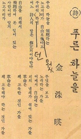 이 장면에서 어찌 김수영이 떠올랐을까?