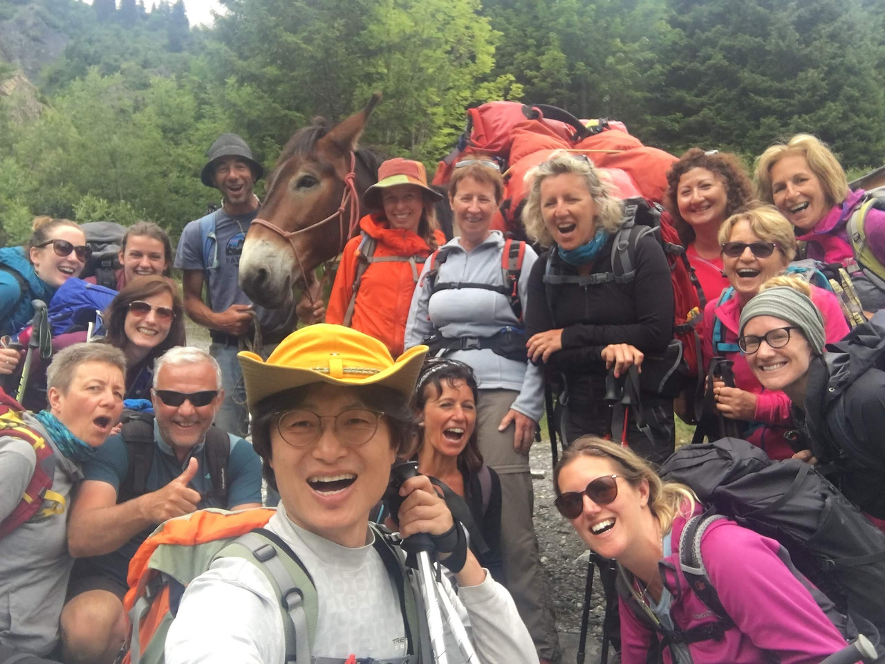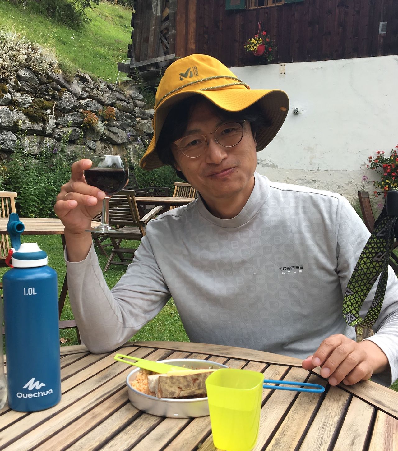 점심을 마치고 트레킹 멤버들이 모의(산악가이드 몰래하였으니 모의가 맞긴 하다)하여 쓴 땡큐카드와 약간의 성의를 모은 봉투를 유려한 언어를 구사하는 현직 선생님인 로라가 주도하여 간단한 세리머니를 하고 세바스티앙에게 건넸다. 어떤 일이든 사랑하고 헌신하면 그 자체로 아름답다. 땡큐카드 이야기가 나왔을 때 모두 한마음이 되었다. 리용서 계 모아 온 마담 팀과 2500 고지에서도 쉴 새 없이 재잘대는 마드모아젤들도 나와 같은 생각이었나 보다. 나는 한글로 고맙다고 쓰고 내 꿈이 네 몽블랑 트레킹 가이드 덕분에 좀 더 앞으로 나아갈 수 있었다고 영어로 썼다. 그가 카드를 읽다가 ‘헤이 영, 네가 처음에 쓴 건 뭔지 못 읽겠지만 하여간 고맙다’고 했다. 내가 그랬다. 네가 정확하게 번역한 것이라고.. 모두들 또 한바탕 웃었다.