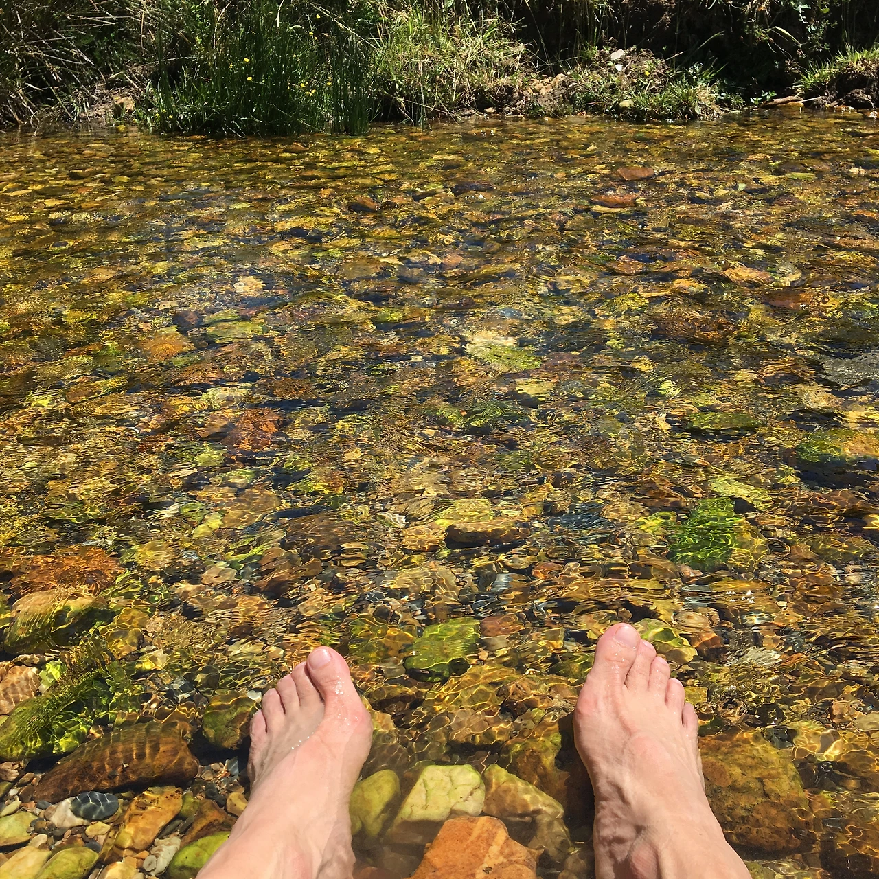 어디서 시를 녹음할 것인가를 찾다 오늘 30킬로 가까이 걸으며 겨우 도착하기 5킬로를 앞두고 피레네 산맥에서 내려오는 맑은 개울가를 만나 좌정하고 앉았다. 무거운 트레킹화를 풀고 수정같이 차고 투명한 물에 발을 담근다. 장강에 물이 흐리면 발을 씻고 맑으면 갓끈을 담근다 했는데.. 발만 넣어도 몸서리가 쳐지는 차가움을 앉고 시를 읊는다. 바람소리 물소리 함께.. 내 목소리, 이런 높고 쓸쓸하고 외로운 시를 읽어도 되는 걸까?