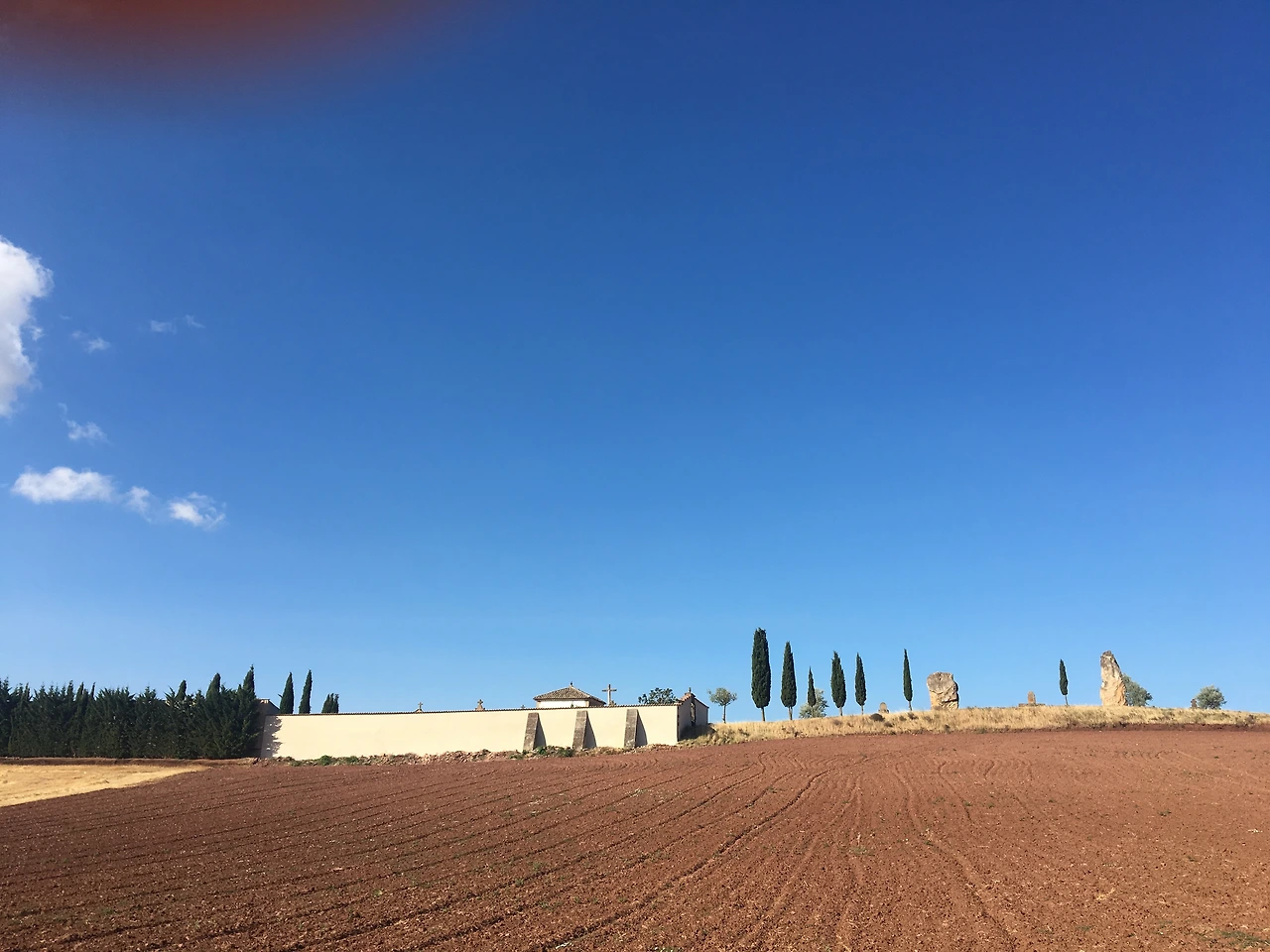 공립 알베르게는 식사를 직접 해서 먹는 시스템이다. 베드는 5유로, 싸서 이용자가 넘치긴 하지만 아침을 꼭 많이 잘 먹어야 하는 나로서는 좋은 선택은 아닌 듯하다. 다행히 어제 한 빨래는 잘 개어서 배낭 안에 고이 모셔져 있다. 우렁각시가 있을 리도 없고.. 거참.. 기억이 없으니.. 아침도 거르고 나오는데 기분이 영 그렇다.. 속죄하는 마음으로 오전에 쉬지 않고 계속 걸었다. 황금색 밀밭이 추수를 마치면 작은 성채만 한 밀 짚단들이 쌓여 있다. 그렇게 풍요의 길을 가는데 마음은 휑하다. 리카르도는 중간중간 담배를 태우기 위해 쉰다. 도상에 다시 만날 날이 있겠지 하며 인사하고 자연스레 리카르도와 작별하다.