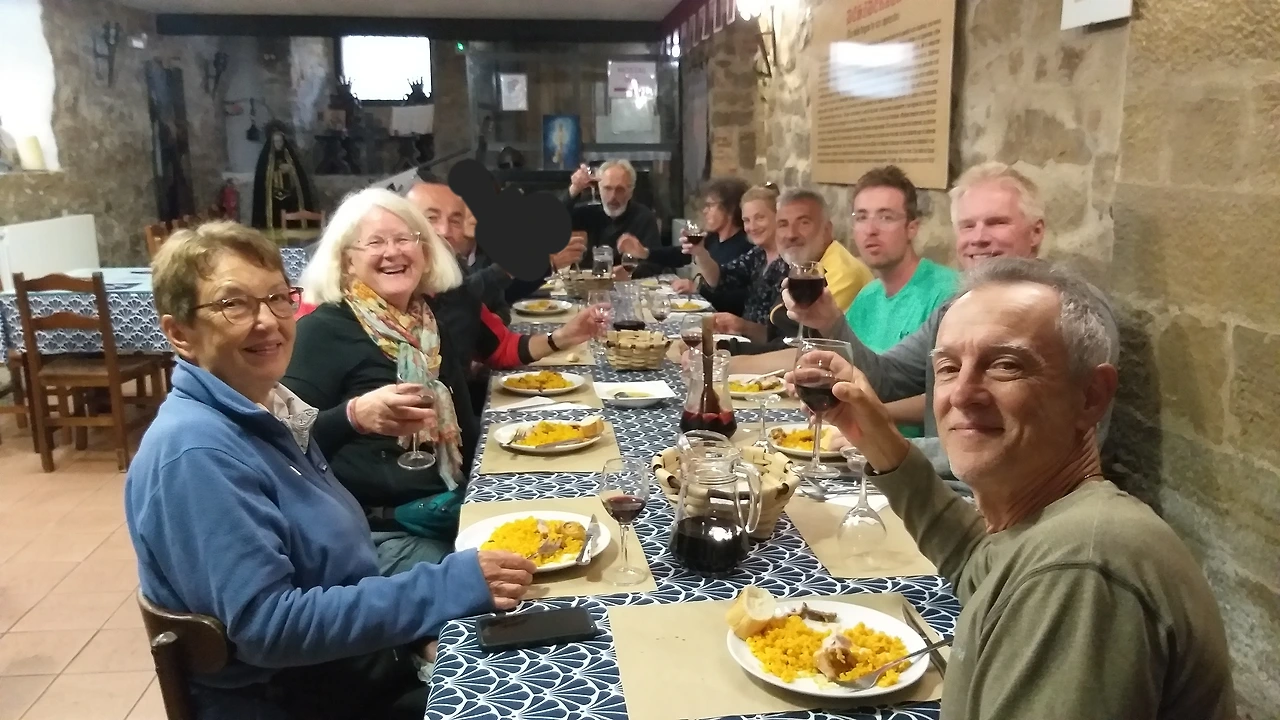 각 나라 건배가 끝난 후 본격적인 식사가 시작되었다.. 식사 도중에 옆사람과 대화도 나누고 즐겁게 먹었다.. 식사 중간중간에 누군가가 일어서서 와인잔을 들며 Cheers 외치면 따라 하기도 했다. 그리고 부엔까미노(스페인어로 좋은 길이라는 뜻)도 외쳤다.