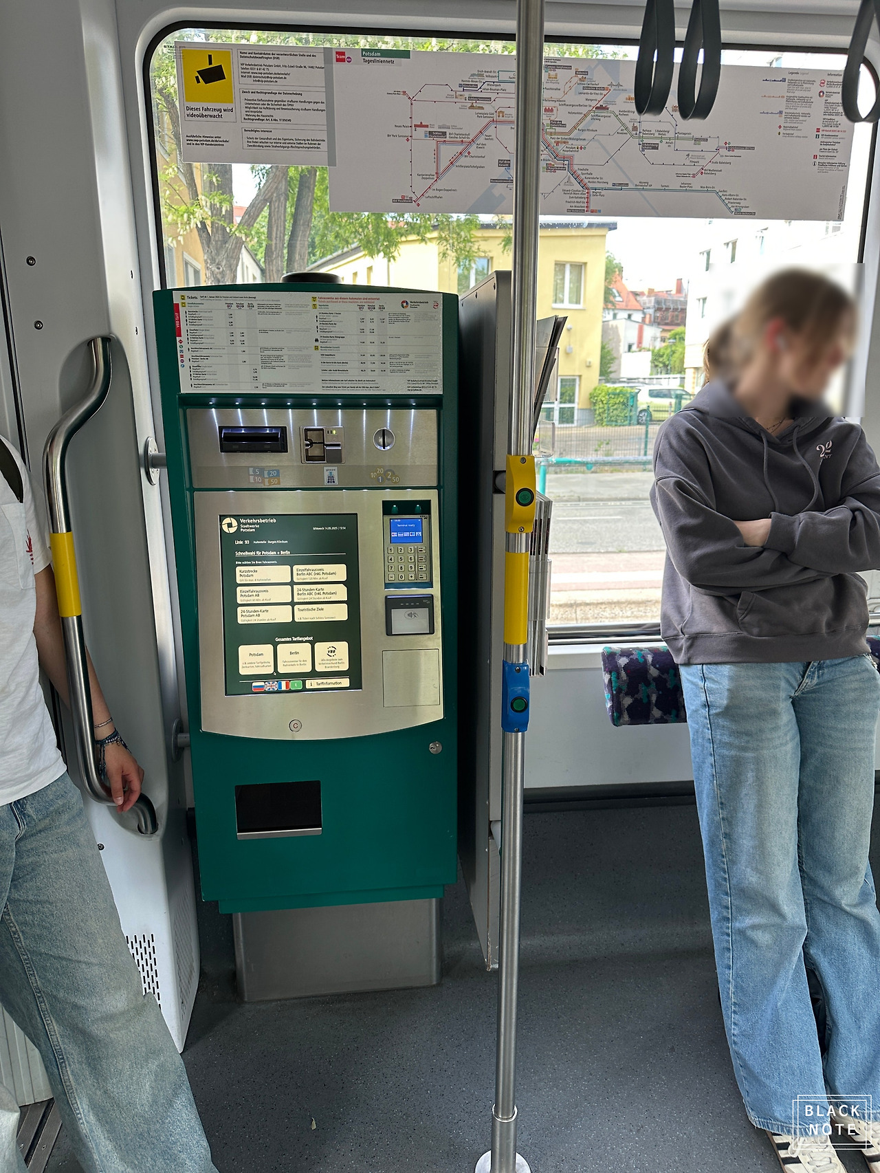 트램 안에도 티켓을 살 수 있는 자판기가 있고