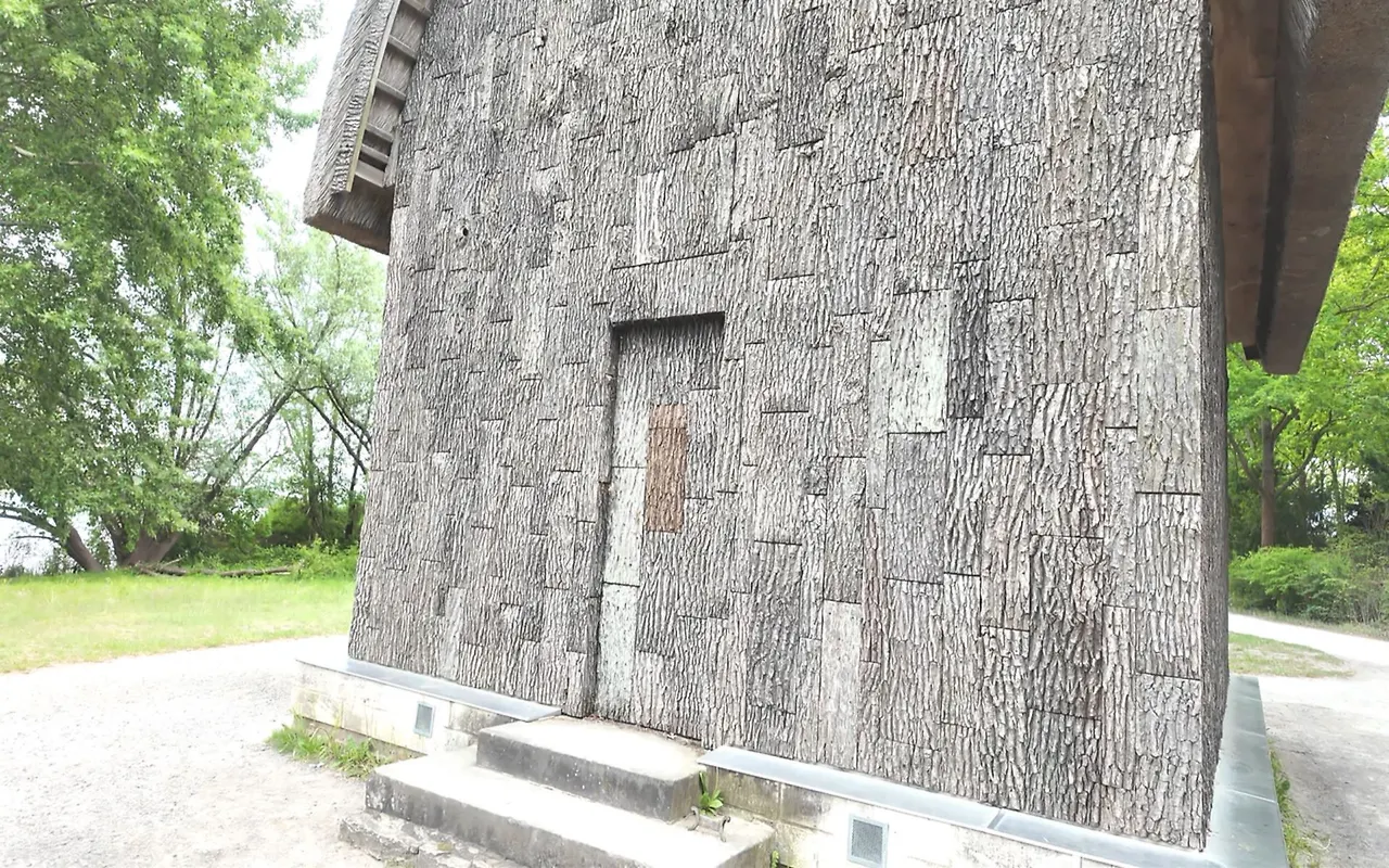 호수를 따라 걷다 보니 정체를 알 수 없는 거대한 오두막 집이 나왔다.