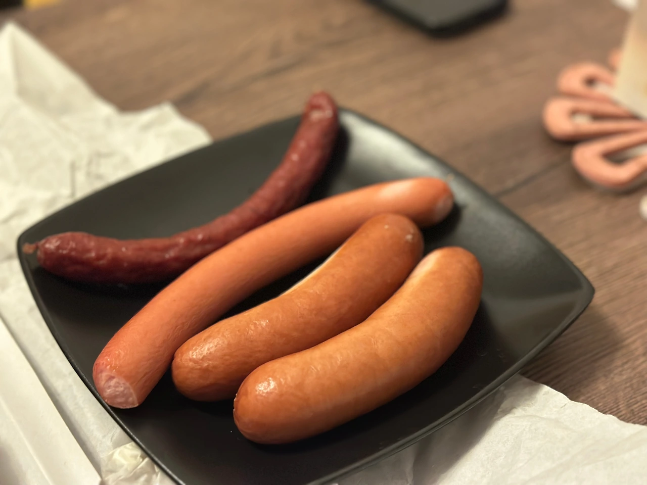 실제 유럽의 비엔나 소시지는 줄줄이 엮인 상태가 아니라 생소했고, 요렇게 얇은 게 특징이라고 한다.