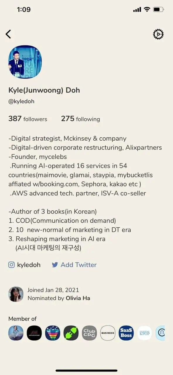 마이셀럽스 창업자 도준웅(카일) 클럽하우스 id : kyledoh