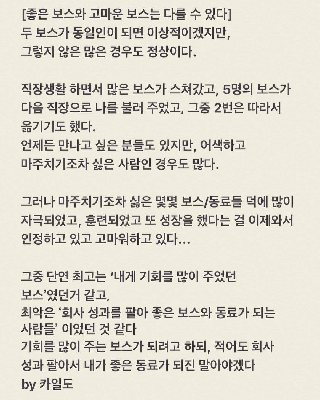 단연 최고는 ‘내게 기회를 많이 주었던 보스’였던거 같고,