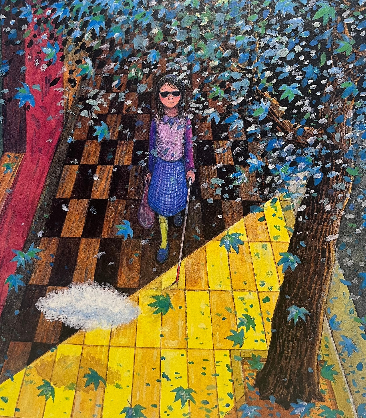 내가 그린 그림은 남편을 상징하는 흰 구름이 사라지려고 하는 장면이다. ‘Nowhere man’처럼 현실에 눈을 뜨지 못하고 허상을 좇던 주인공이 이제 ‘Now here’, 지금 여기 바로 이 순간을 치열하게 살아내야 하는 삶의 전환을 맞이한다. 엄마의 부재로 인한 상처로 자라지 못한 주인공의 상처 입은 내면 아이는 어느 날 영화관에서 엄마와 화해하고 마음을 치유한다. 늘 꿈꾸던 엄마 아빠 손을 잡고 영화관을 나오는 상상의 장면 배경에 꽃들이 만발하게 피어 있다.