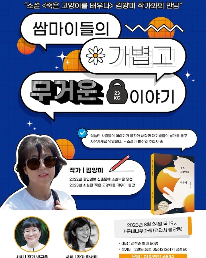 소설 <죽은 고양이를 태우다> 를 썼습니다. 내세울 이력도 별로 없이 나이만 먹었습니다^^
