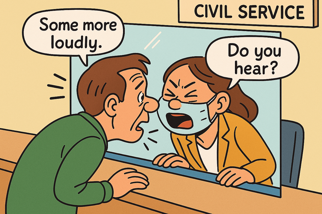 법원 민원실에서의 나 역시 민원담당자와 가림막을 사이에 두고 귀와 입을 가까이 대고 소통했는데 그 모습이 마치 가림막을 둔 연인사이의 모습처럼 애처로웠다. 잘 설명하고 싶었고 잘 들어보고 싶었던 모습이 웃픈 상황을 만든 것이다.