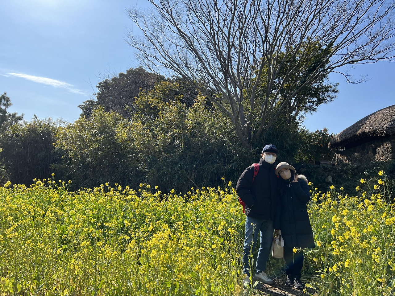2022. 2월 지금의 제주, 유채꽃이 한창이다. 제주민속촌에서. 지금 묵고 있는 숙소는 표선이다.