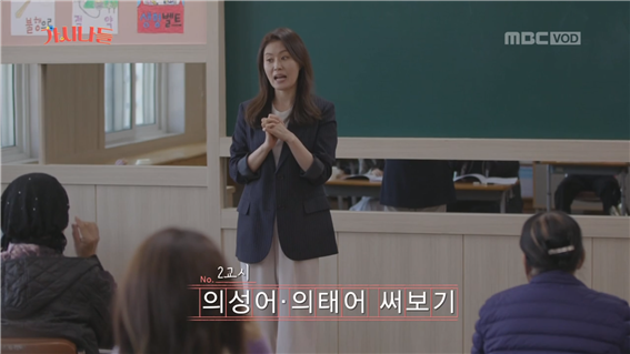 의성어, 의태어를 적어본 후 심화 수업인 속담 맞추기 활동을 했다. '우물가에서 숭늉 찾는 격'이라는 속담이 나오자 속담의 뜻처럼 "남자들이 그렇게 성격이 급하다"며 화가 나면 밥상을 엎어버리던 남편의 모습을 언급했다. 밥상 엎는다는 이야기에 공감한 듯 다들 한 마디씩 덧붙인다.