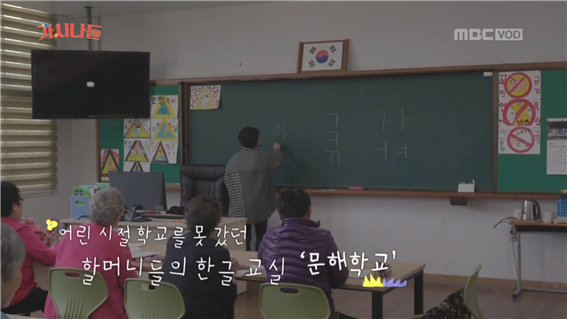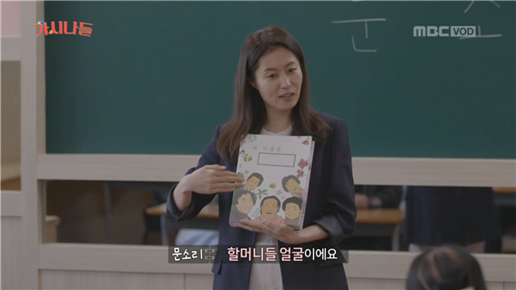 어색한 교실 풍경, 낯선 선생님에 할머니들은 교실로 들어오며 "여기가 아닌가 보다"라며 머뭇거린다. 문해학교 선생님이 된 문소리 배우가 "여기가 맞다"며 교실로 안내한다. 할머니들은 그제야 안심한 듯 웃으며 들어온다.