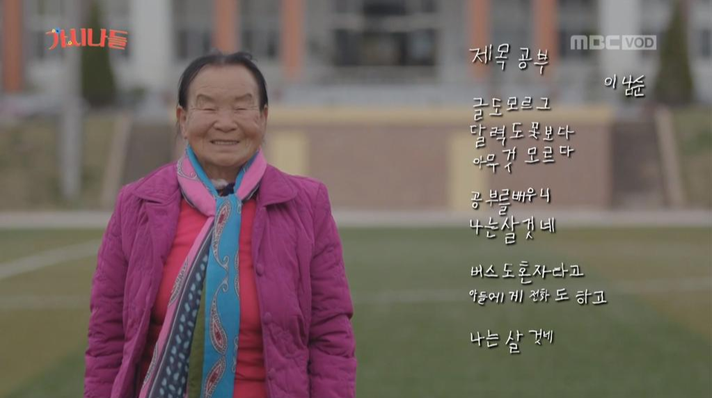 <가시나들>의 다음 수업시간에는 시를 배우며 할머니들의 '꽃이 되었던 순간'을 이야기한다. 다음 수업에서는 학습을 넘어, 배움으로 자신을 표현하는 할머니들을 만나보고 싶다. 이번 주 일요일 오후가 기다려지는 이유다.