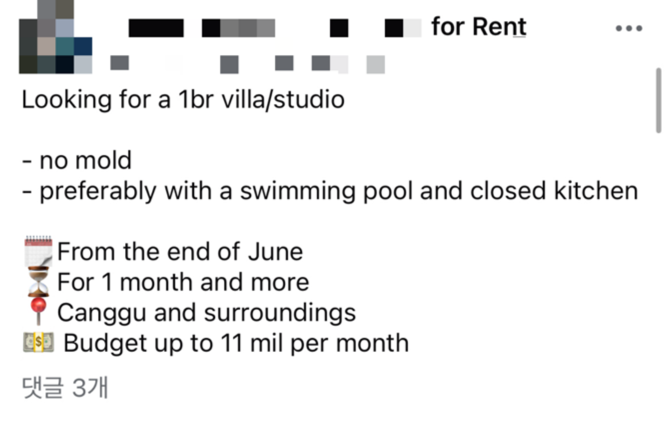 그렇게 나는 곰팡이집에서 연신 흐르는 콧물을 훌쩍이며 알레르기 약에 취해 하루하루를 버티고 있었다. 동시에 내가 장기 렌트하게 될 집도 이런 문제가 생기면 어떡하지라는 생각에 머리가 지끈지끈했다. 아직 일어난 일은 아니다만 내가 지금까지 경험해 본 발리를 생각하면 더한 일이 생겨도 크게 놀랍지 않다.