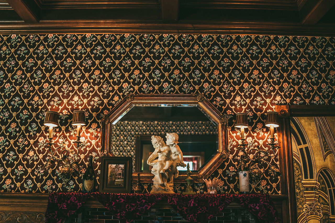 고전틱한 그림들과 나무로 만들어진 가구들,