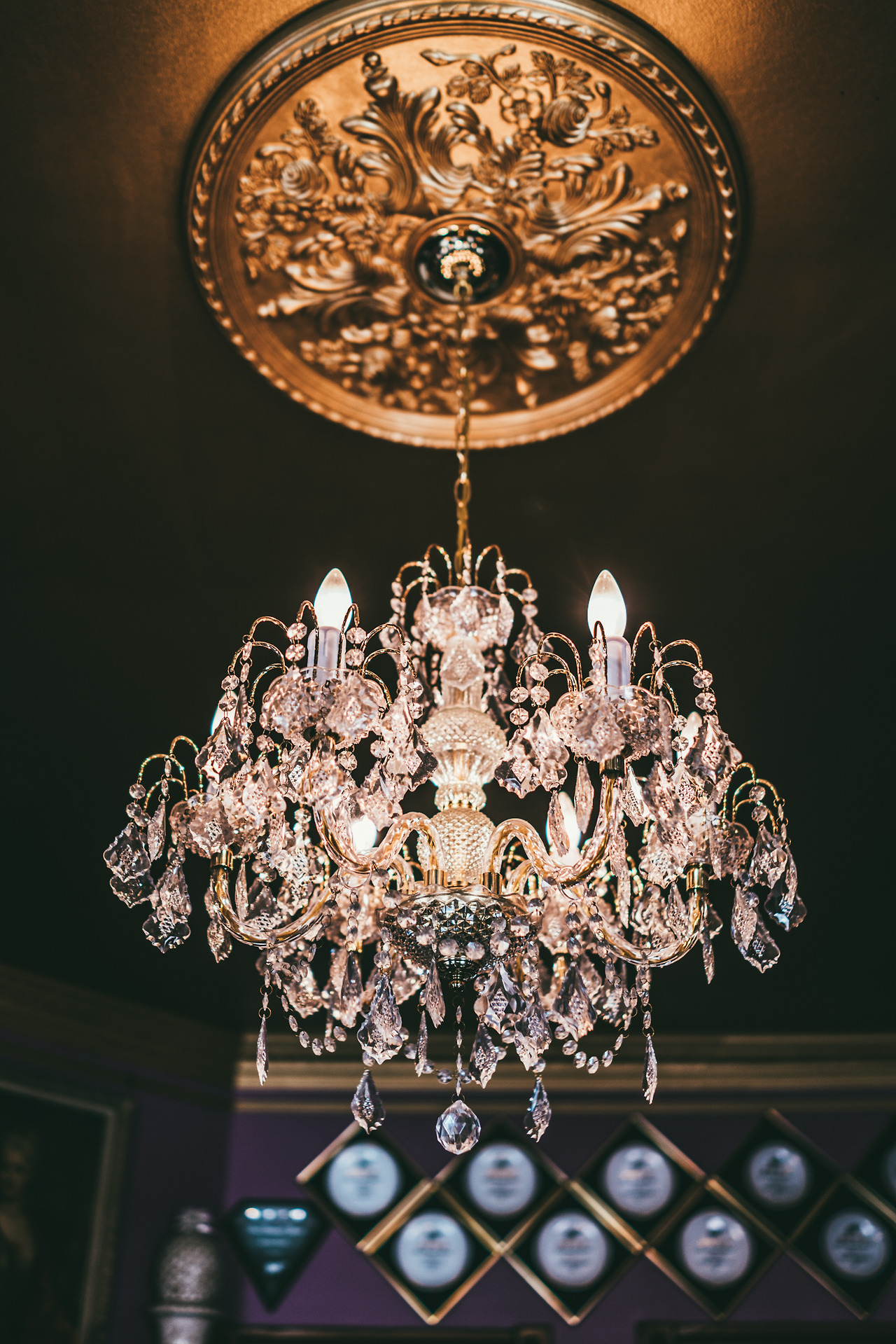 각각의 공간마다 따스한 빛을 내뿜는 샹들리에들