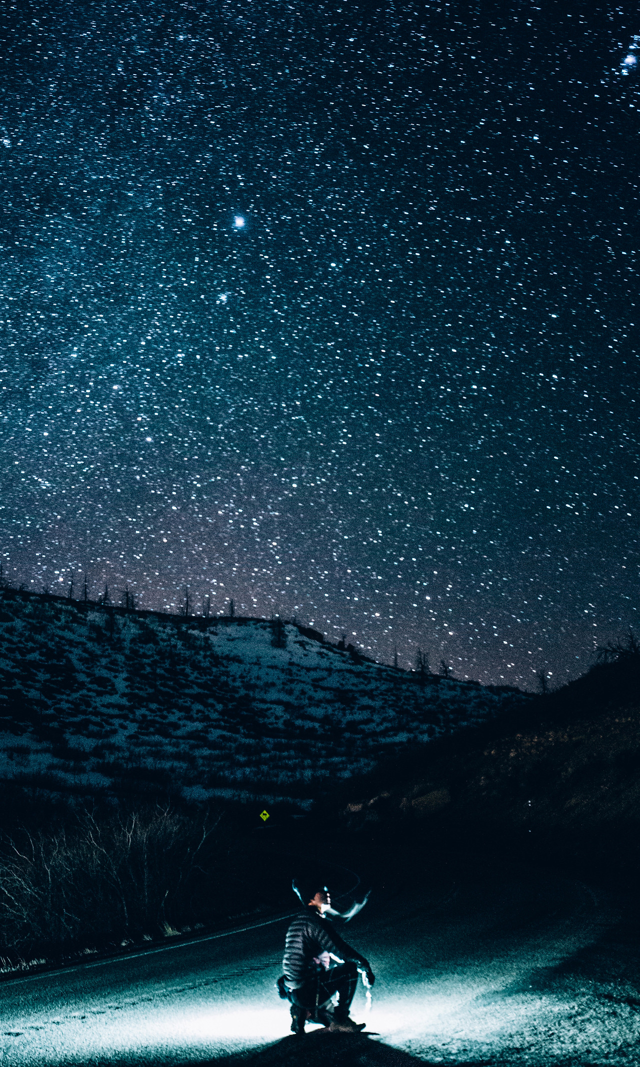 다시 출발하기 전 잠시 하늘이나 감상해 볼까 하는 마음으로 내 머리에 켜놓았던 전등을 끄고 고개를 들어 하늘을 바라보는 순간 하늘에서는 수천수만 개의 별들이 나를 주시하고 있었다.