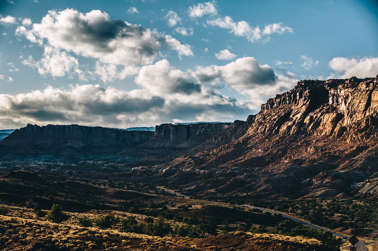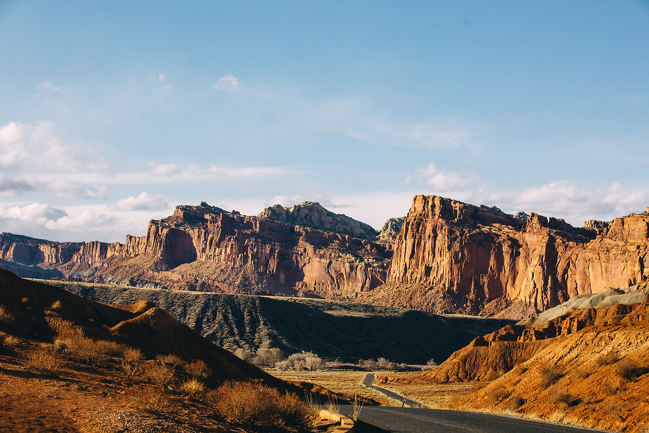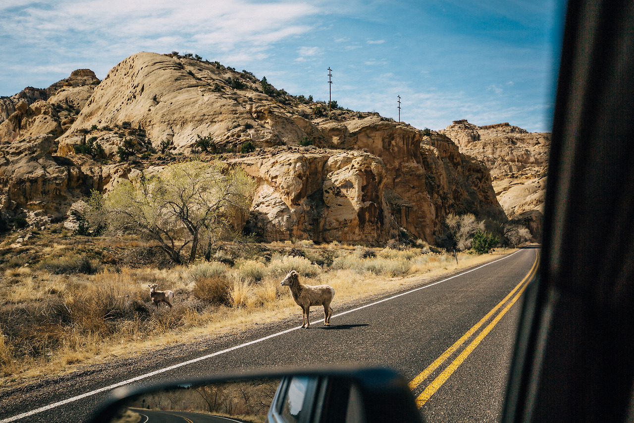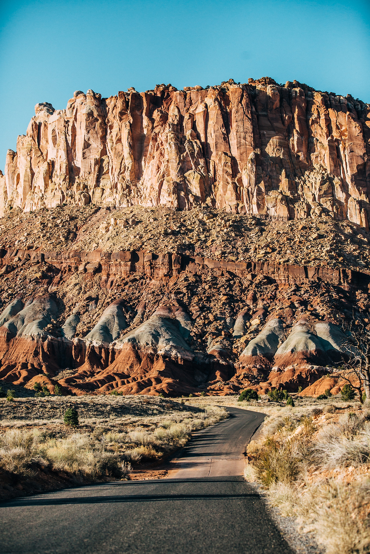 그렌드 워시를 나와 케피탈 리프 자연 안에서 드라이브하며