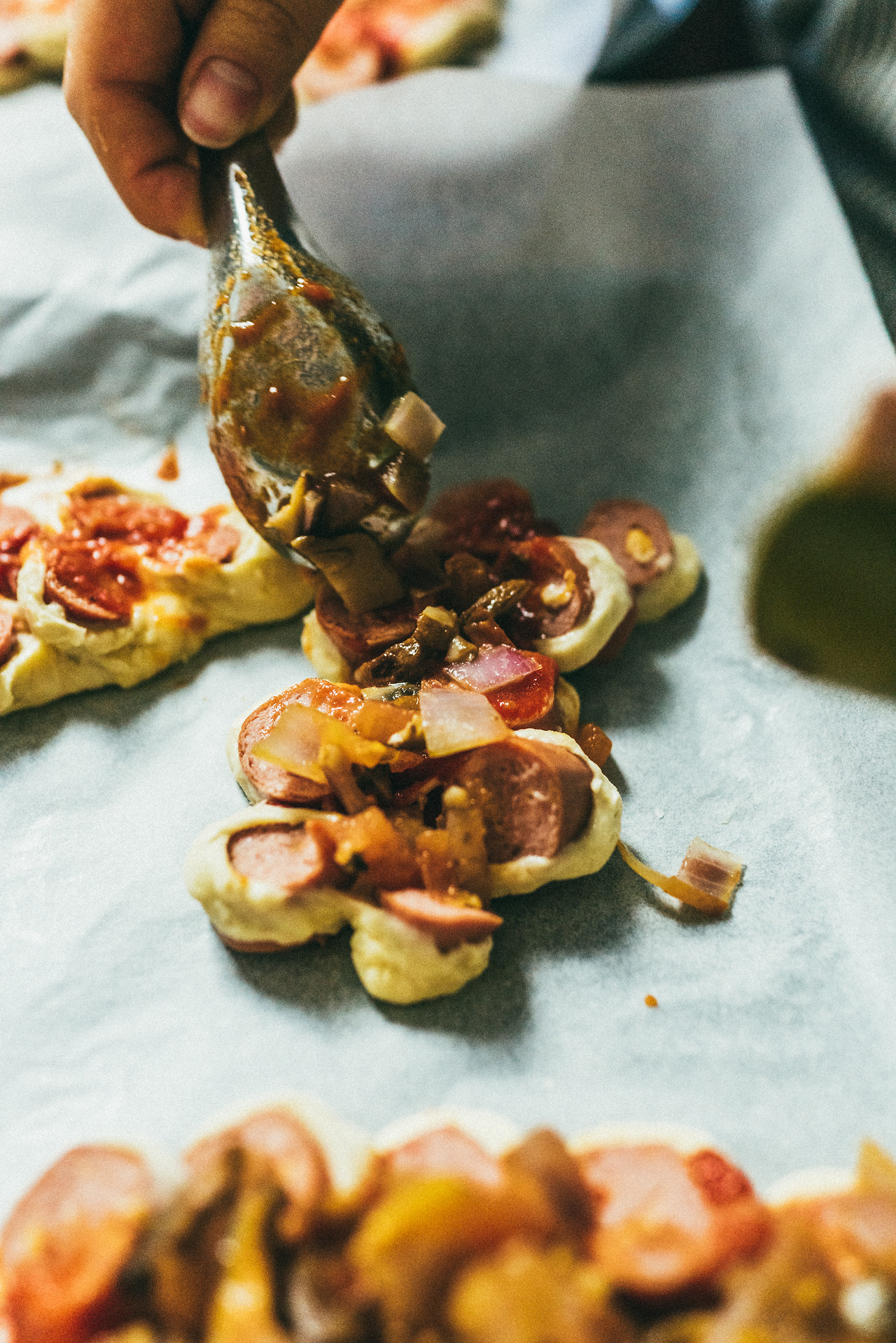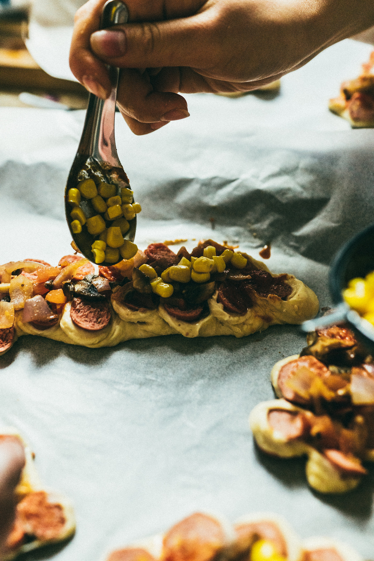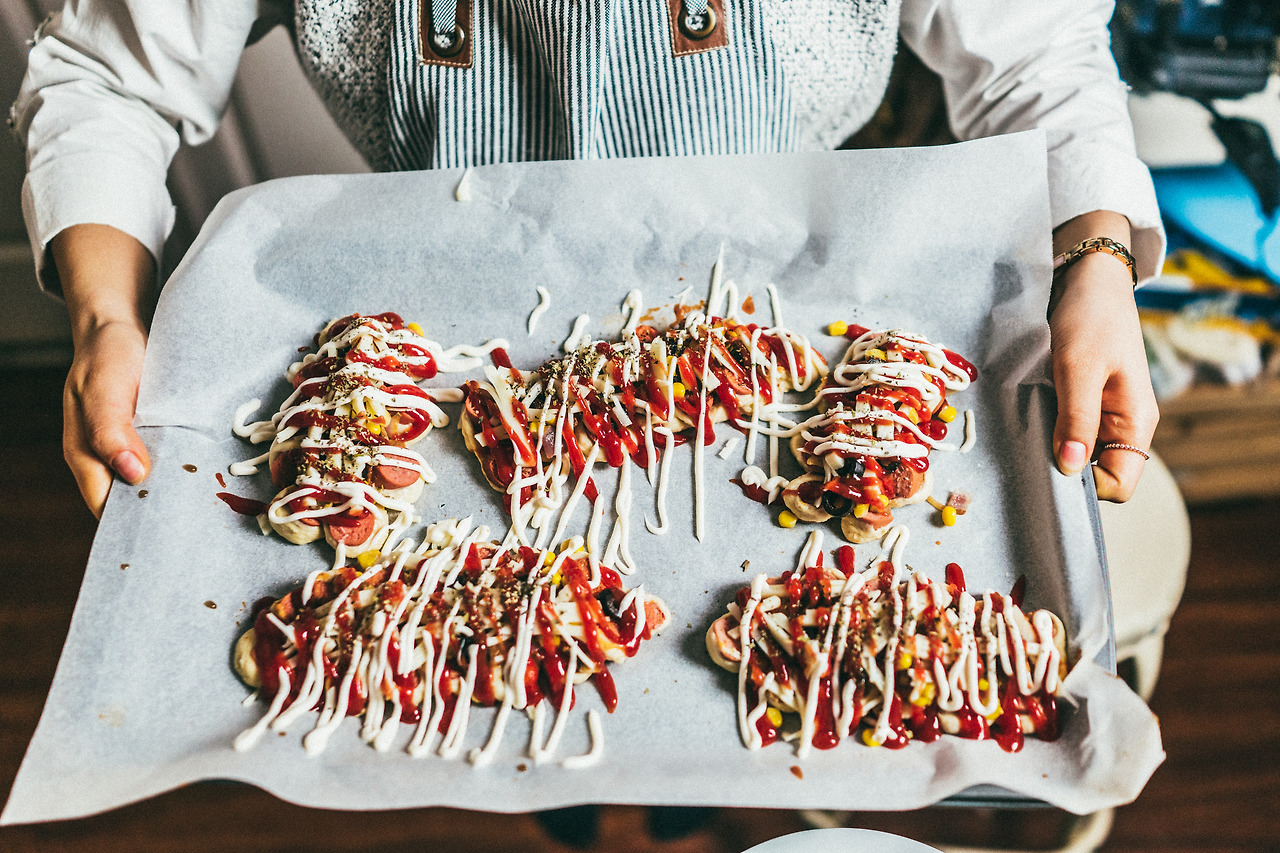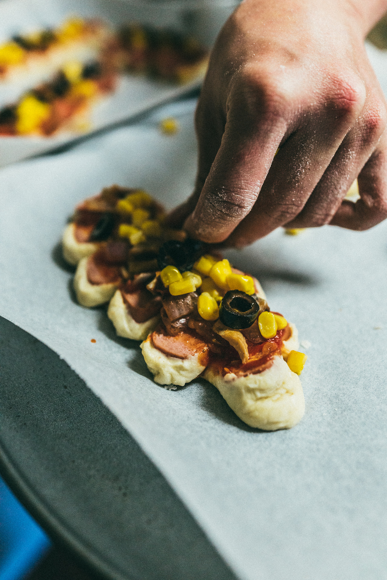 또 모양을 만들고 나서 소세이 사이, 중간 부분 반죽을 조금 넓혀줘서 토핑들을 넣을 공간을 만들어 주는 것도 좋다.