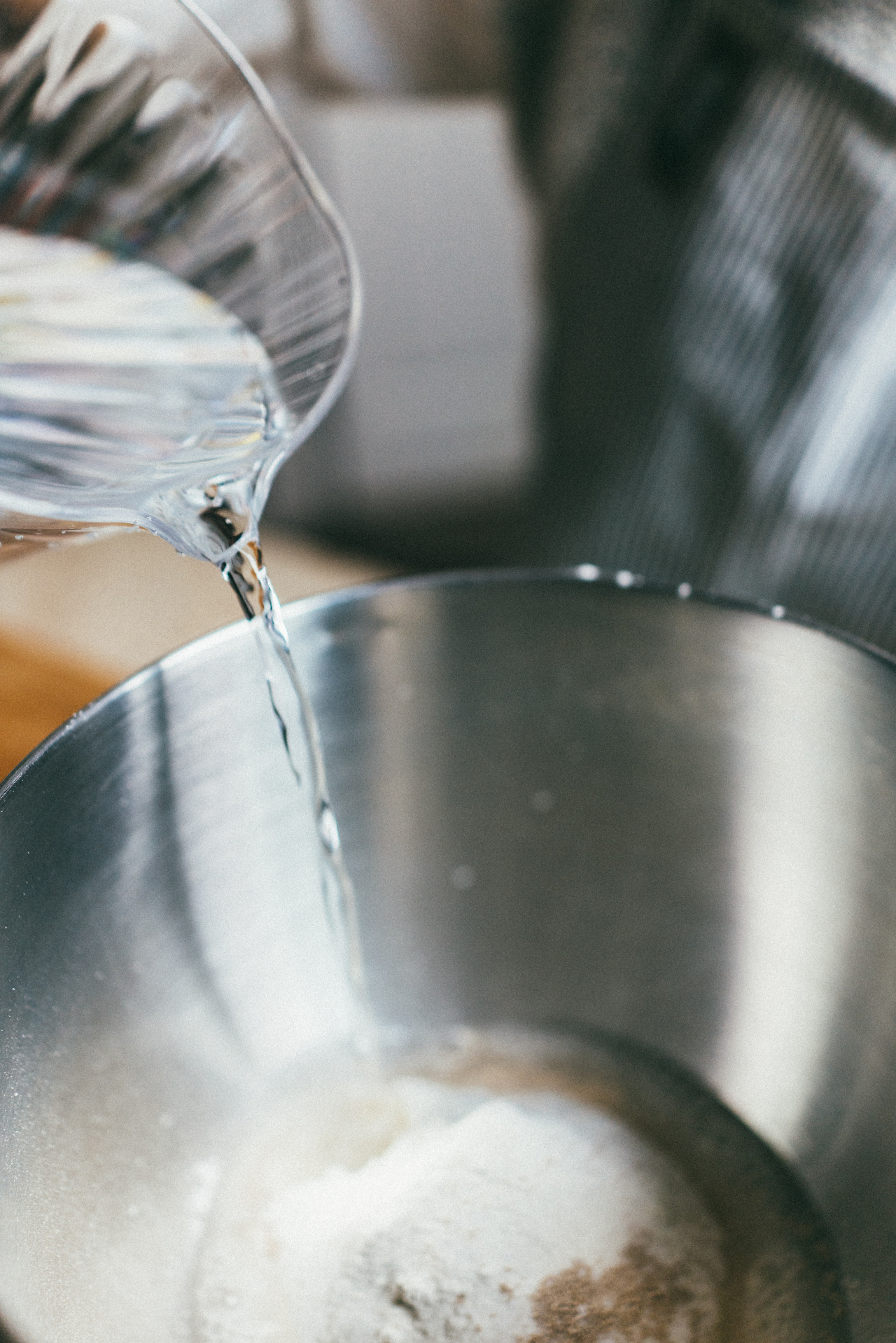 그 후 이스트와 소금을 넣고 물을 같이 혼합해준다.