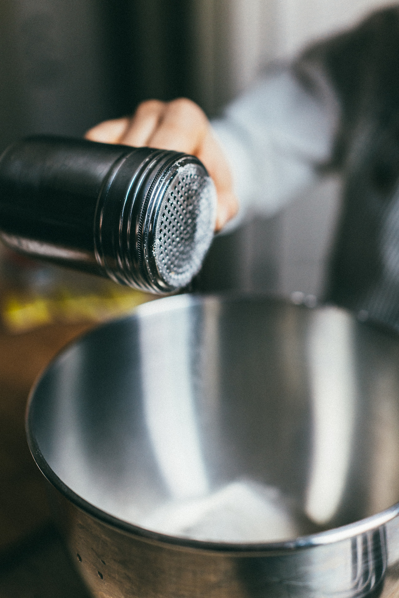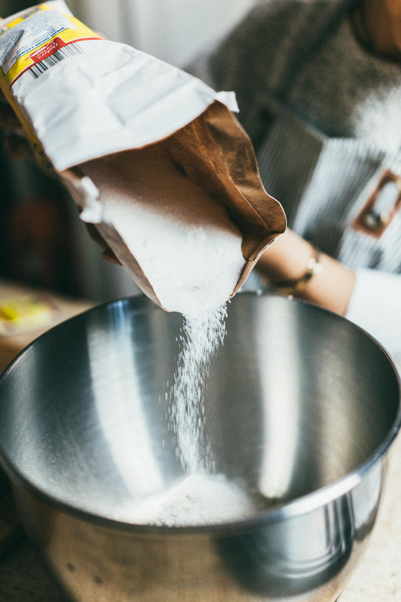 강력분을 넣고 설탕을 넣어준다.