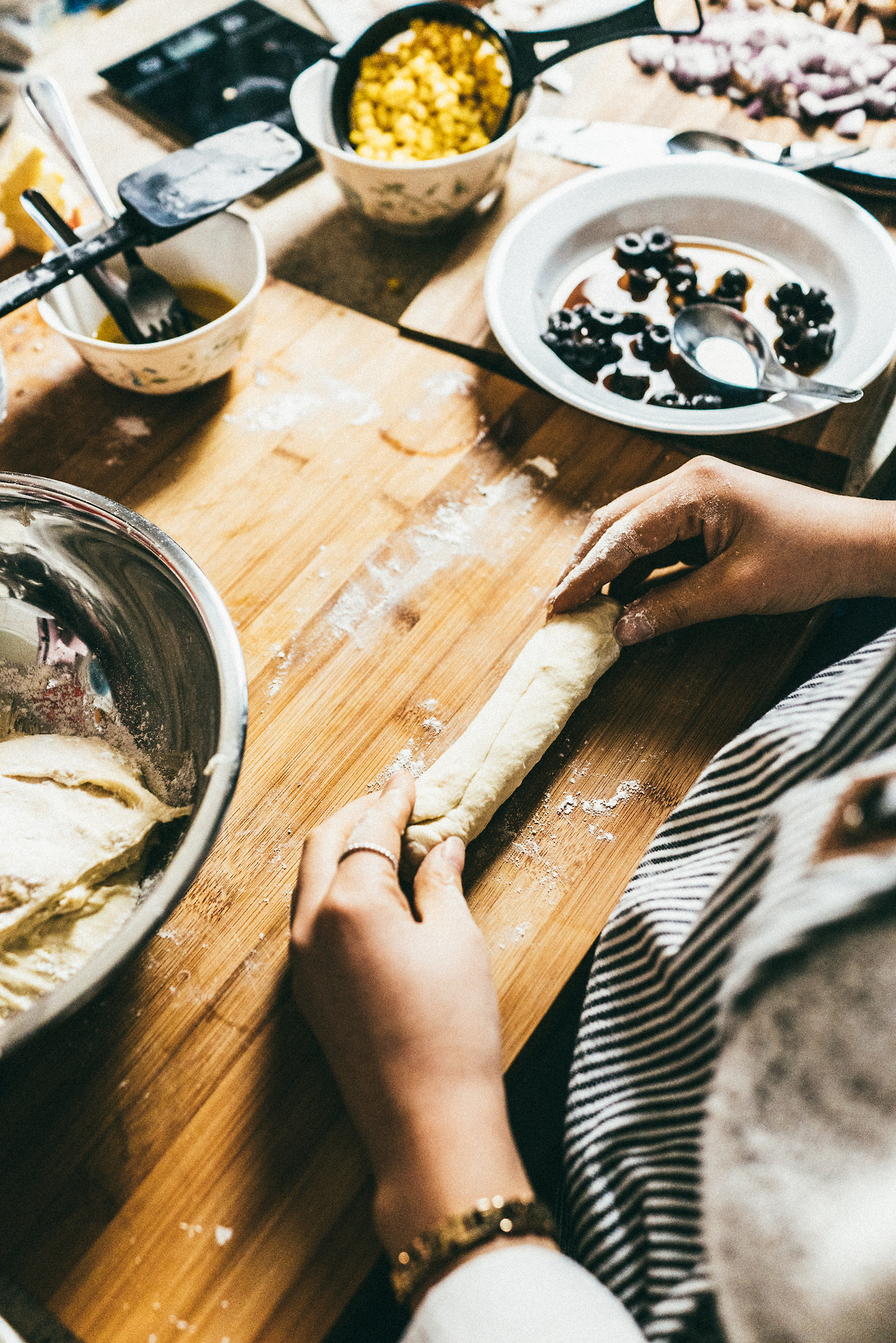 반죽의 발효가 끝나고 이제 모양을 만들 차례!