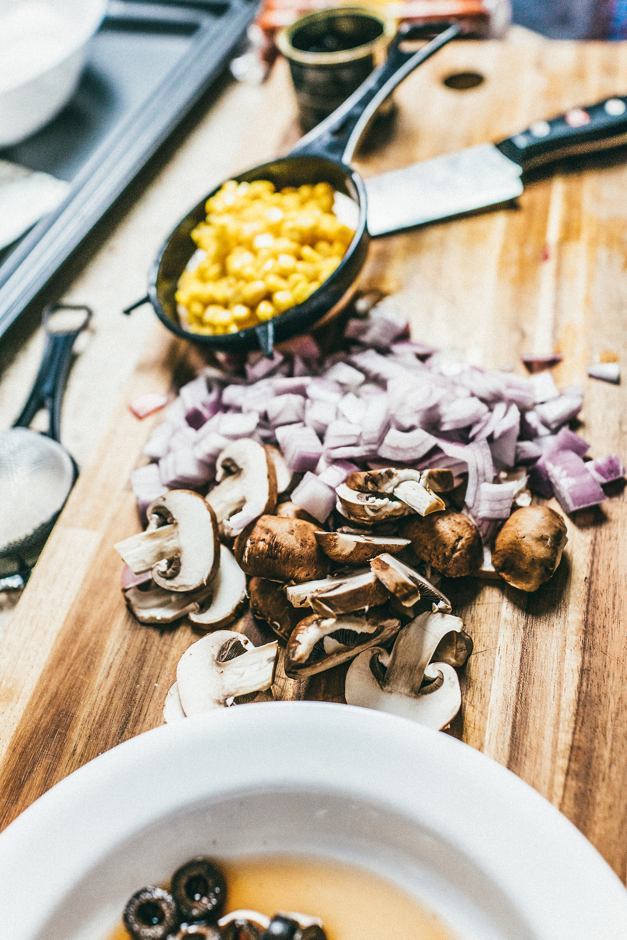 색감이 좋은 옥수수 콘과 블랙 올리브는 마지막 순으로 올려주는 게 시각적으로 더 먹음직스럽게 보인다!