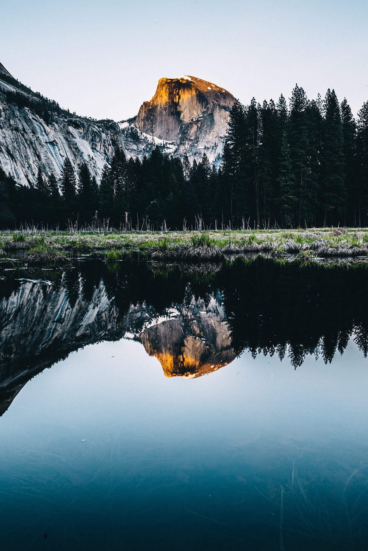 아무런 미동도 없는 저수지는 마치 거울처럼 요세미티의 모든 모습을 반사하고 있었다.