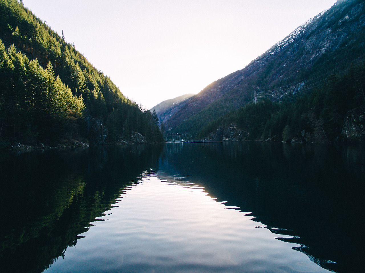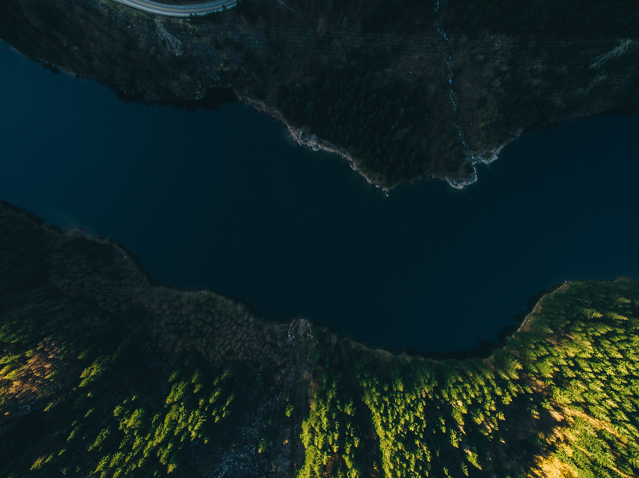노스 케스케이드 자연 안으로 들어와 길을 달릴 때 길 옆으로 잔잔한 강이 흐르고 있었다.