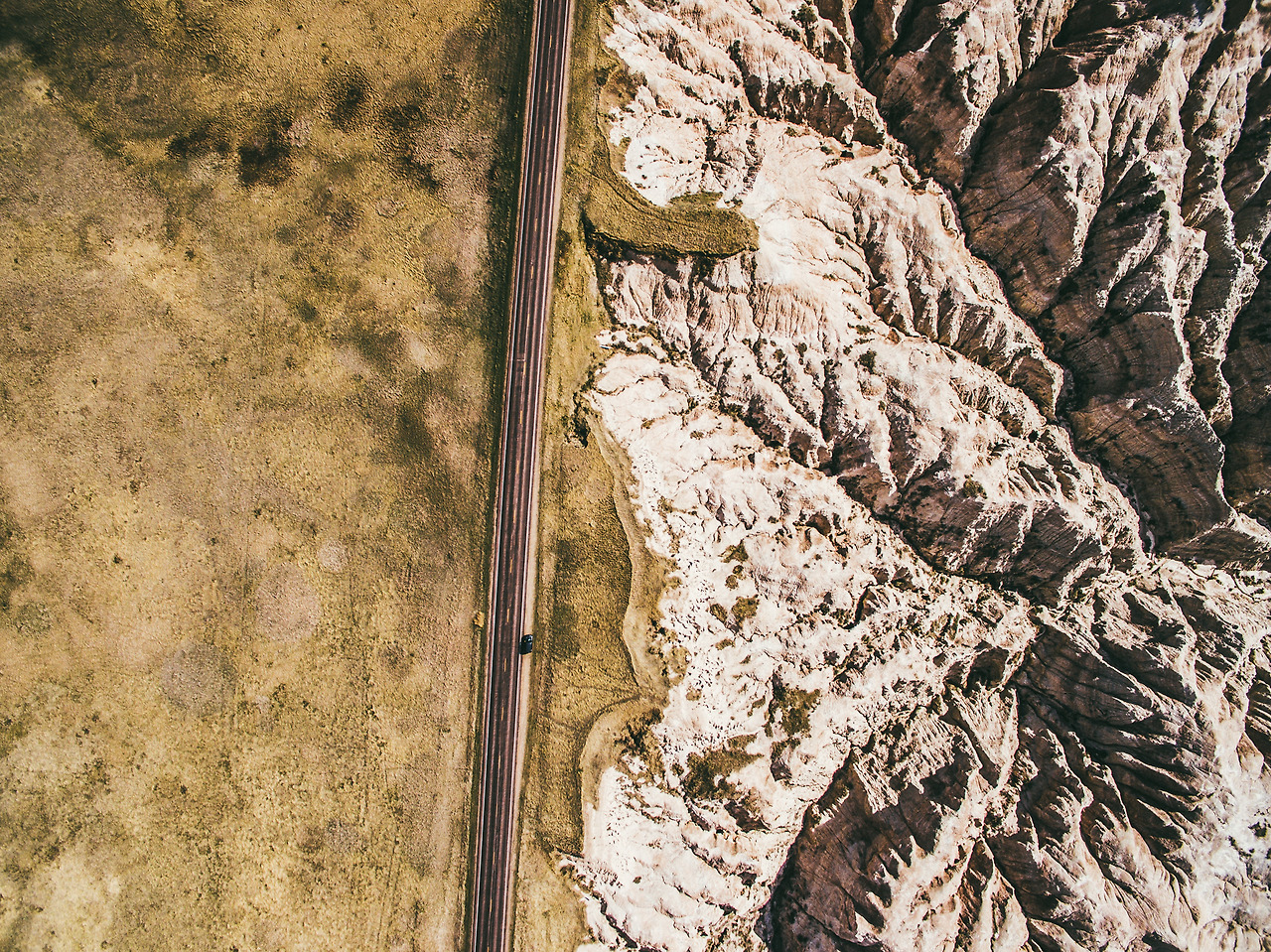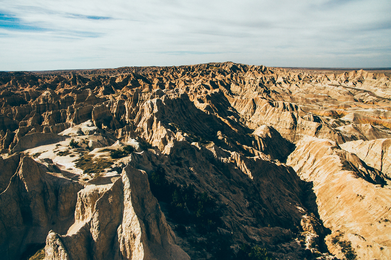 배드랜드를 가르는 내내 태양은 강렬했고 땅은 대부분 메말라 있었으며