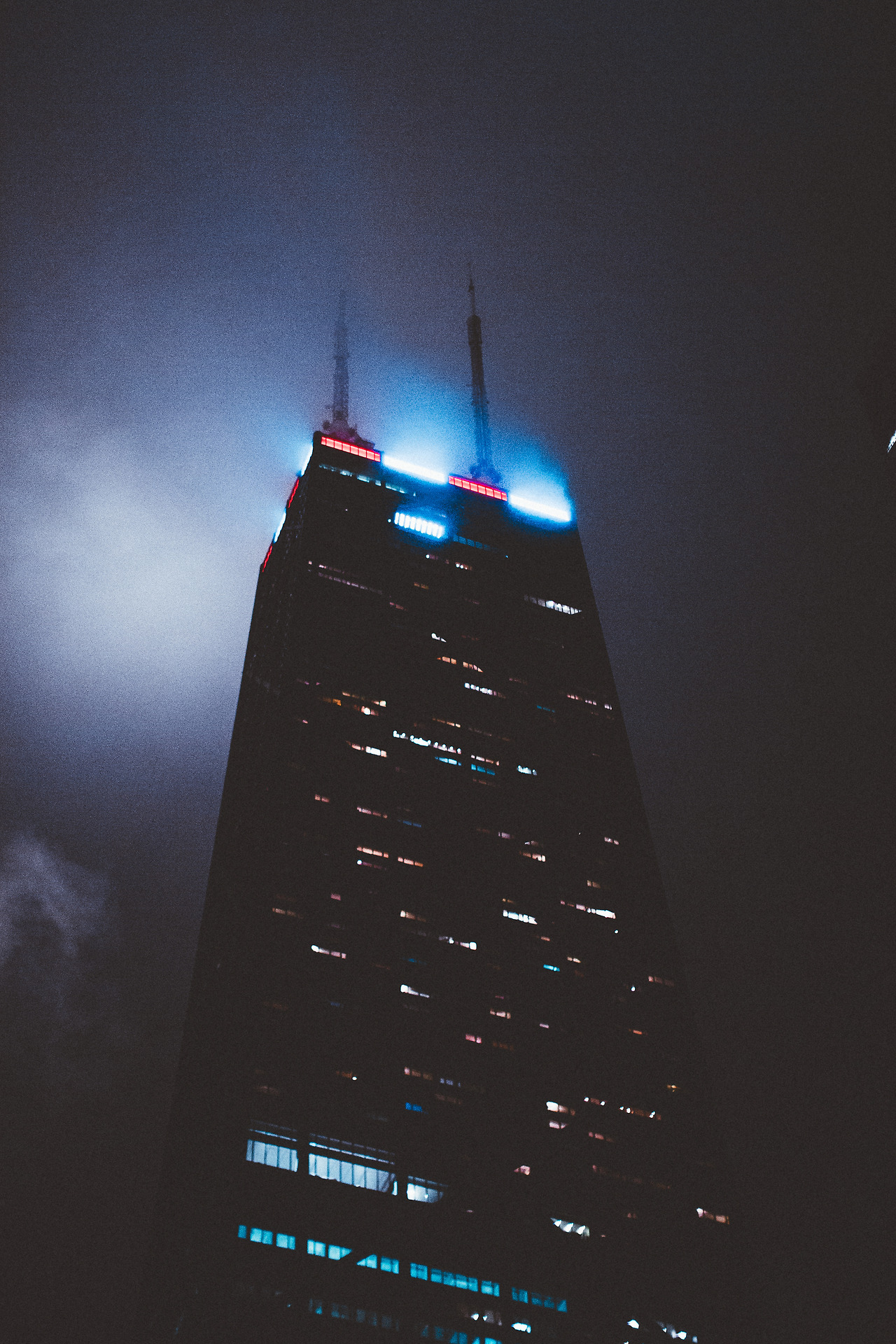 하늘에 완벽한 어둠이 찾아오고 날씨는 더욱더 싸늘해졌다. 나는 오늘 일정의 마지막으로 도시의 모습을 높은 곳에서 바라보기로 결정짓고 존 핸콕 빌딩으로 행했다. 존 핸콕 빌딩은 시카고를 상징하는 빌딩 중 하나이다. 빙딩 꼭대기에는 전면이 유리로 된 장소에서 도시의 멋진 모습을 바라볼 수 있다. 존 핸콕 빌딩 안으로 들어와 스카이라운지로 입장하는 입구에서 티켓을 구입하려고 했을 때 건물 직원은 내게 오늘 날씨가 흐려서 도시의 풍경을 볼 수가 없을 것이라고 말해주었다. 대신 라운지보다 조금 아래층에 위치한 바가 있으니 그곳을 한번 가보라고 추천해 주었다. 나는 라운지로 향하는 입구를 나와 바가 있는 층으로 가는 엘리베이터에 올라탔다. 엘리베이터 문이 열리고 고급진 장식들로 가득한 라운지 바에 들어섰다. 나는 창가 쪽에 자리를 잡고 맥주 한잔을 시키고 창문을 바라봤다.
