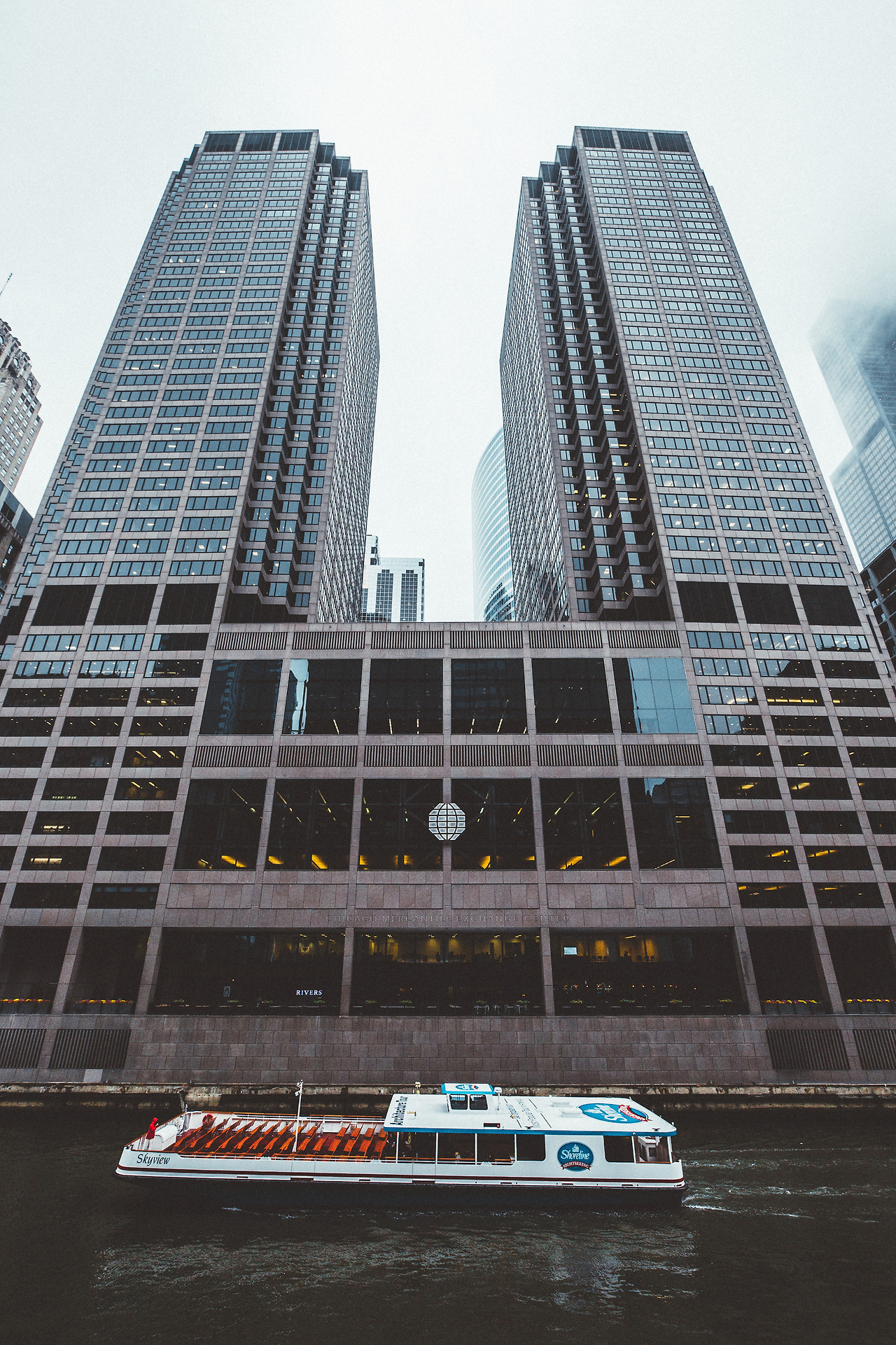 밀레니엄 공원을 나와 이번엔 시카고 도심을 가로지르는 시카고 강을 따라 걷기로 결정했다. 한국의 한강 같은 느낌이지만 시카고스러운 느낌이 가득하다. 잔잔하게 흐르는 강물 위로 관광 보트가 틈틈이 강 위를 가로지르고 그 위로 운치 있는 다리들이 이어져 있었다. 강을 애워싼 거대한 고층 건물들의 모습에도 다시 한번 감탄하게 된다. 무겁게 내려앉는 구름과 전날의 비로 한층 더 시카고 건축의 미가 살아나는 모습이었다. 모든 것이 더할 나위 없이 나를 감탄하게 했지만 한 가지 날 힘들게 만든 건 추위였다. 이미 아침부터 오후 저녁이 다가오는 시간 동안 밖에서 걸었기에 휴식이 필요했다. 하늘에서는 어느덧 보슬비가 내기고 있었다. 나는 고층 건물 로비에 있는 커피점에서 시카고의 밤이 찾아올 때까지 기다리며 휴식을 취하기로 했다.
